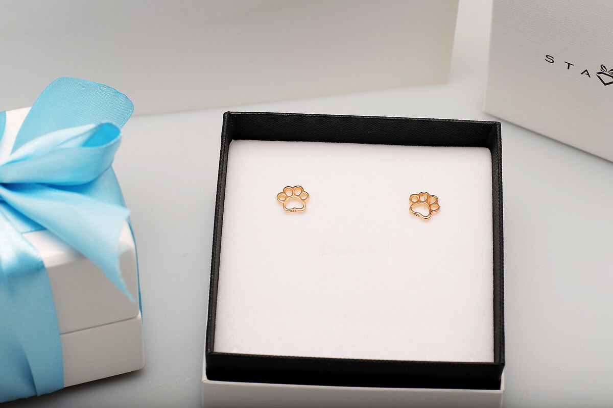 Hõbedased roosa kullaga kaetud kõrvarõngad koera käpa kujul – iga koera sõbra jaoks.