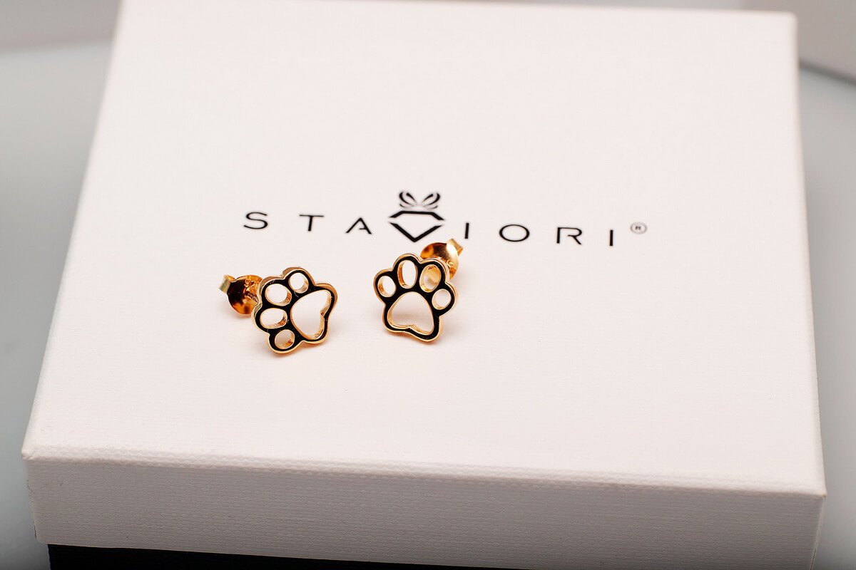 Hõbedased kollakullaga kaetud kõrvarõngad koera käpa kujul | kuldne