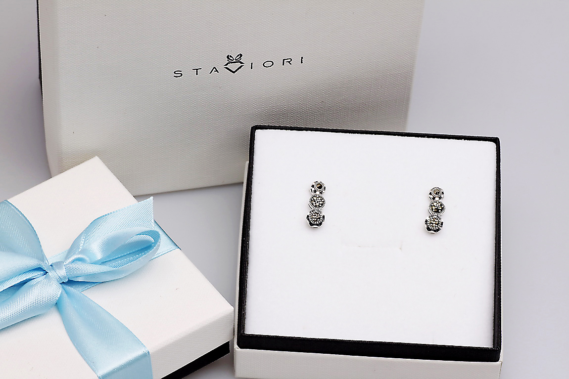 Hõbedased stiilsed kõrvarõngad markasiitidega – KDM2911