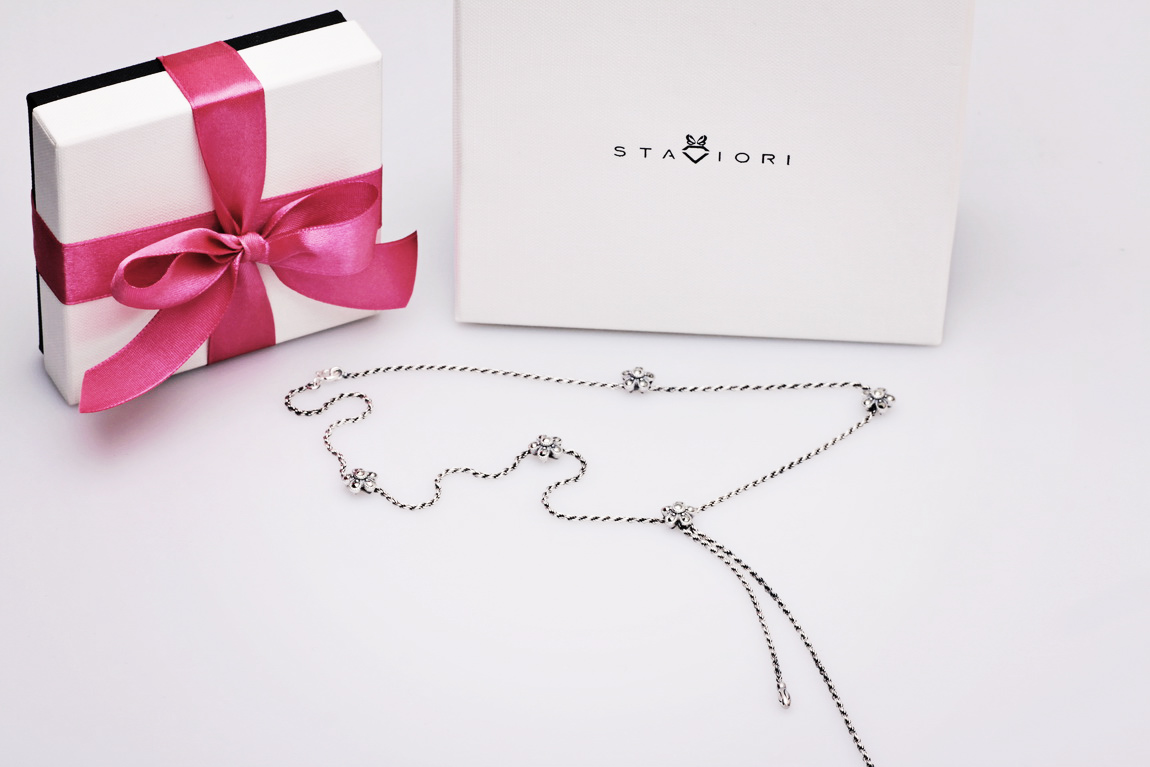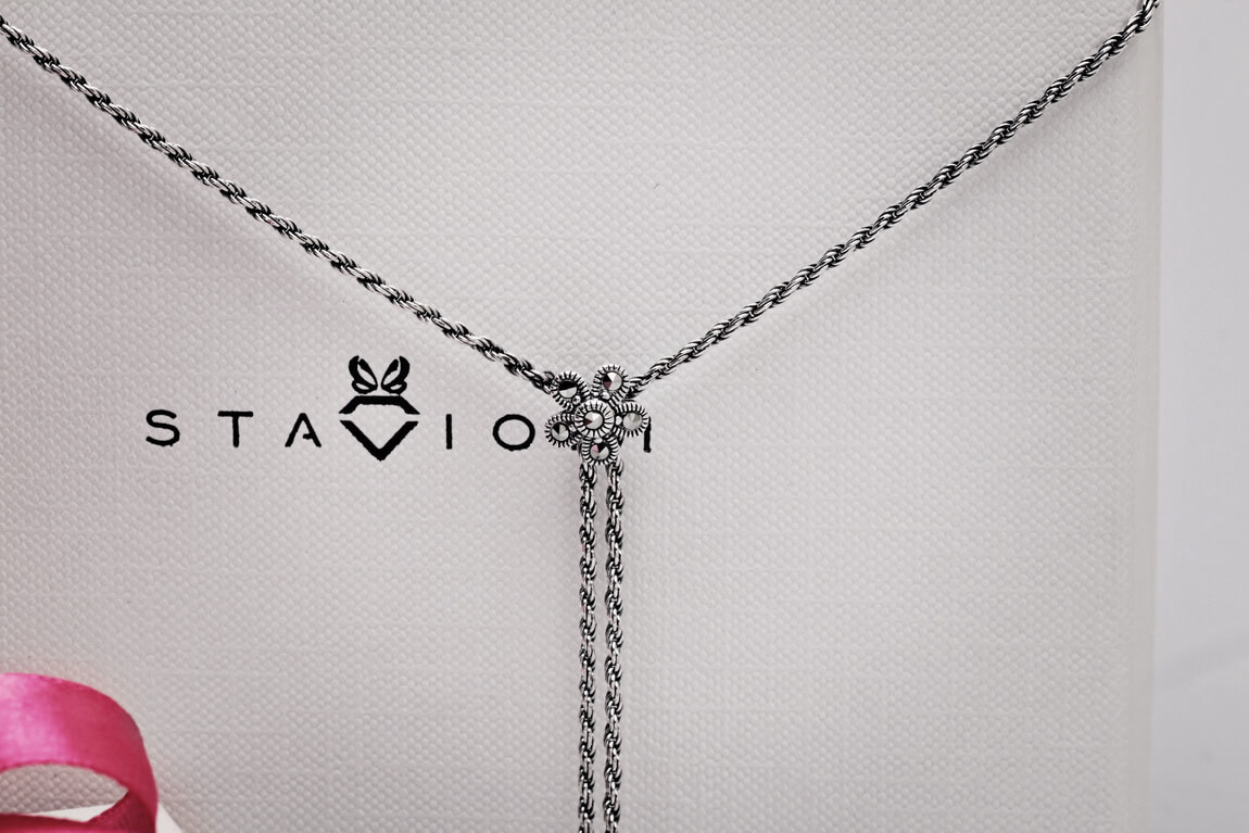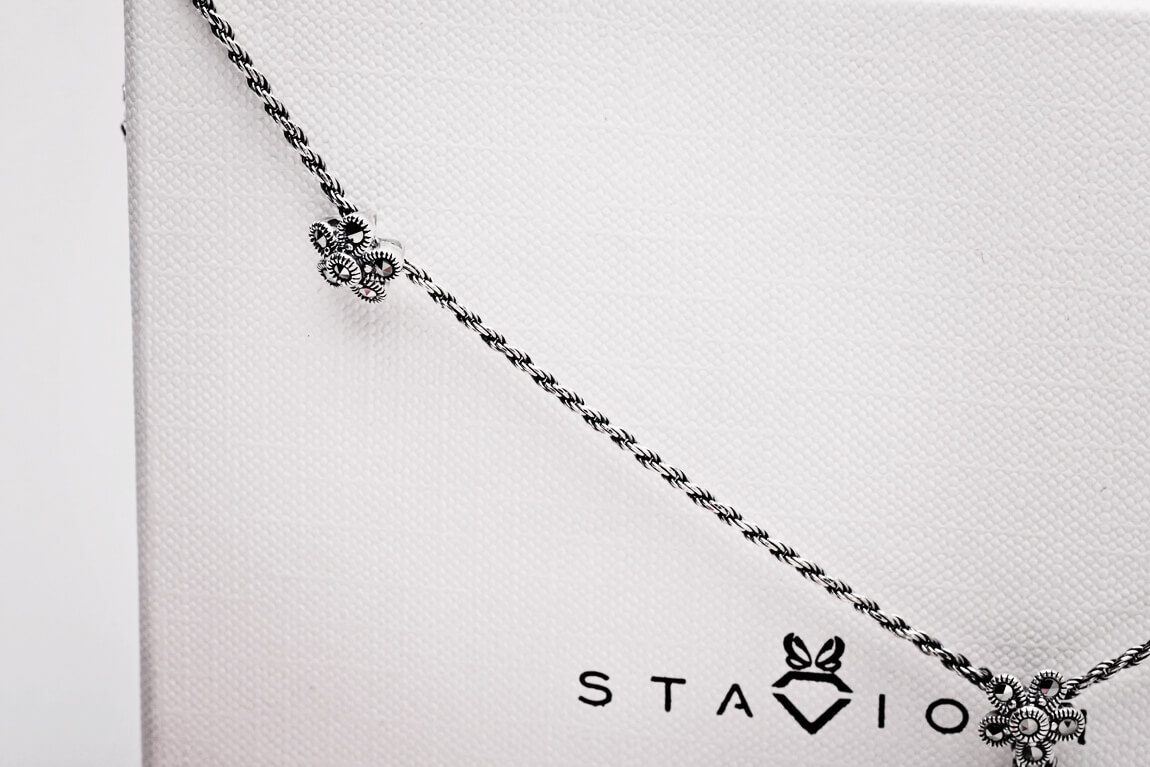 hõbedast kaelakee ja kõrvarõngad tsirkoonidega
