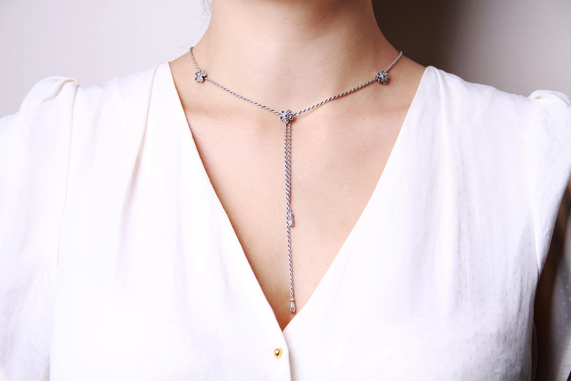 Kaelakee hõbedast pärli ja tsirkoonidega