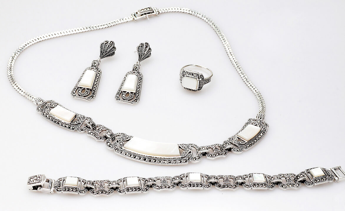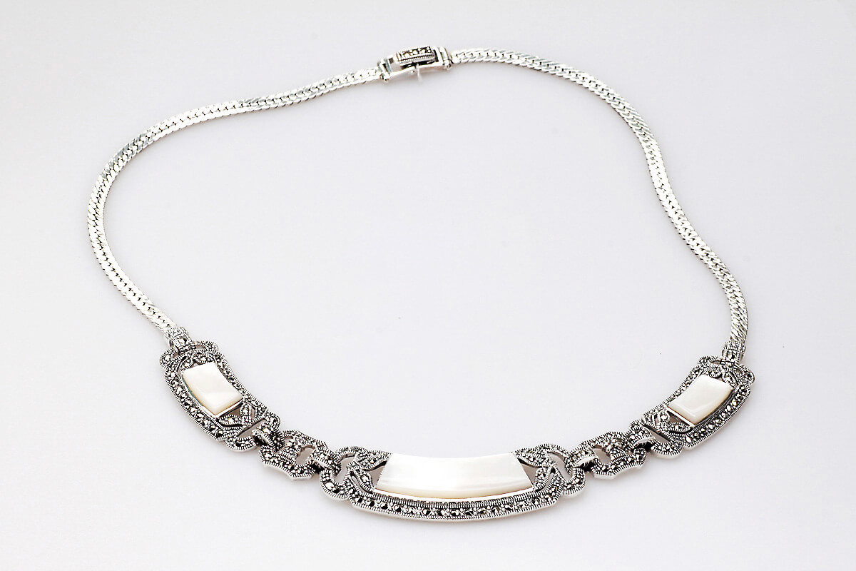 Hõbedast kaelakee pärli ja markasiitidega
