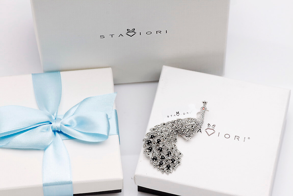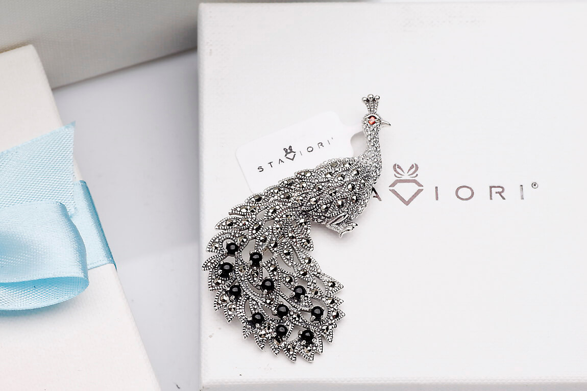 Pross hõbedast liblikas oonüksite ja markasiitidega
