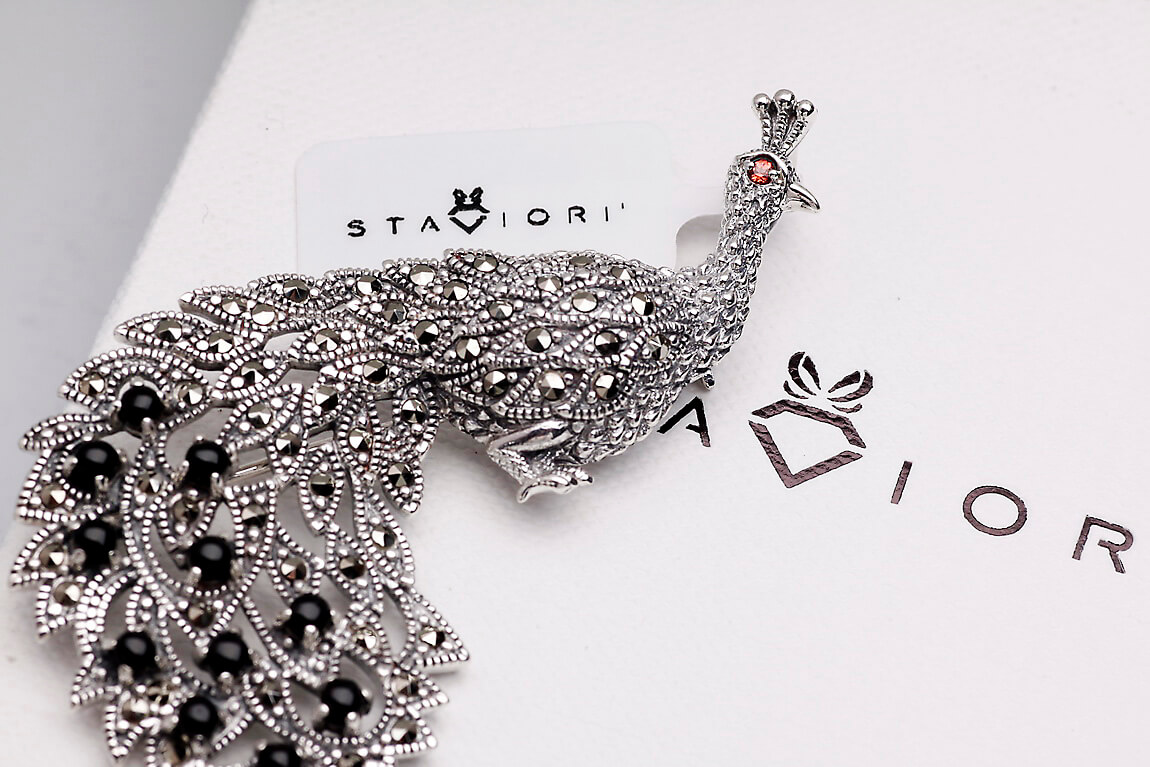 Hõbedast pross markasiitide, ooniksi ja granaadiga – PAAB