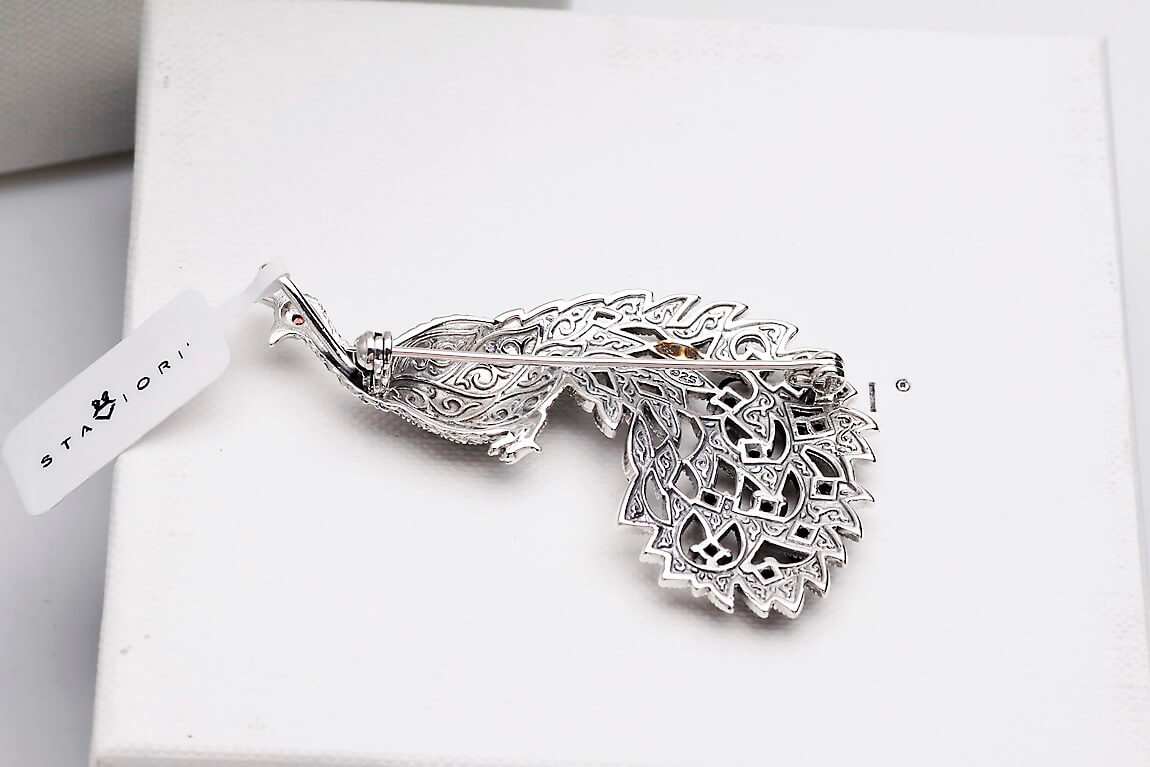 Hõbedast agraaf-pross markasiitide ja koralliga