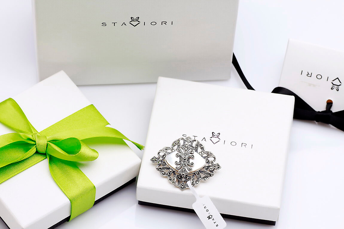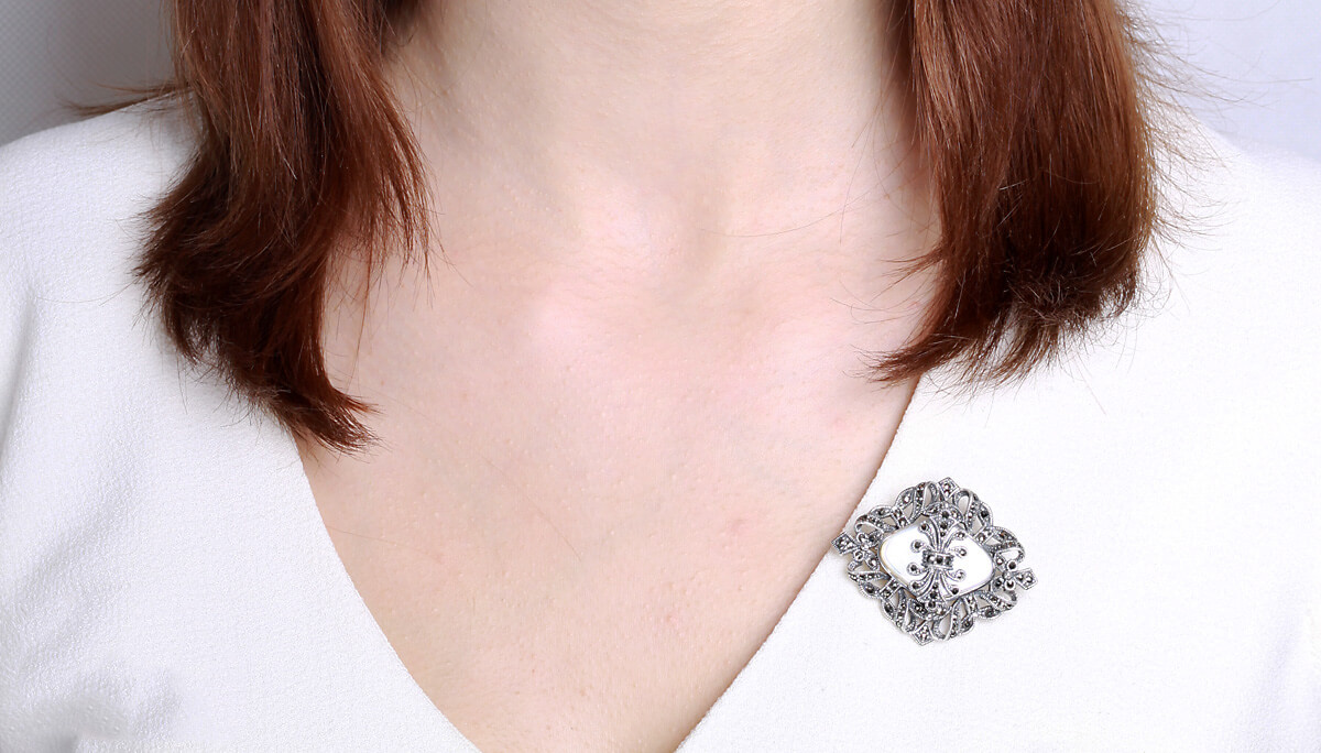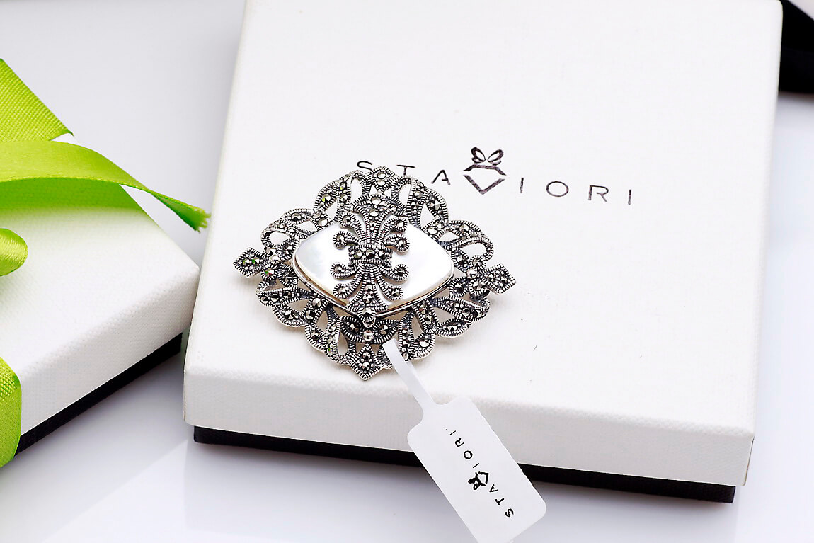 Efektne õiekujuline pross, mis on valmistatud roodiumkattega 0,925 hõbedast. Ažuursed kroonlehed on kaunistatud läikivate markasiitidega, mis lisavad kompositsioonile elegantsi ja sära. Markasiitidega täidetud keskosa rõhutab kenasti õite teemat. Prossi saab kanda ka ripatsina, muutes selle mitmekülgseks ja omanäoliseks kaunistuseks paljudele riietustele.