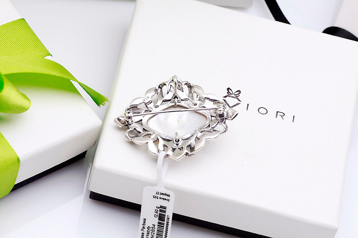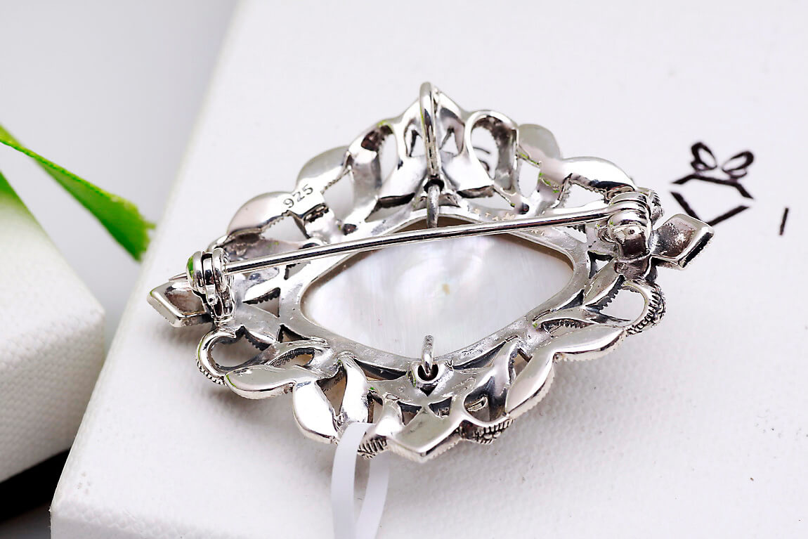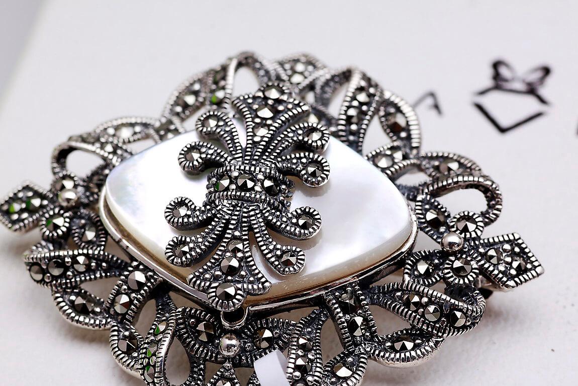 Kaunis hõbedast pross õis – moon – markasiitidega
