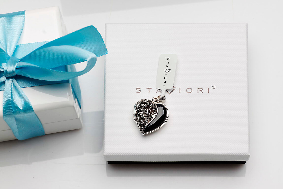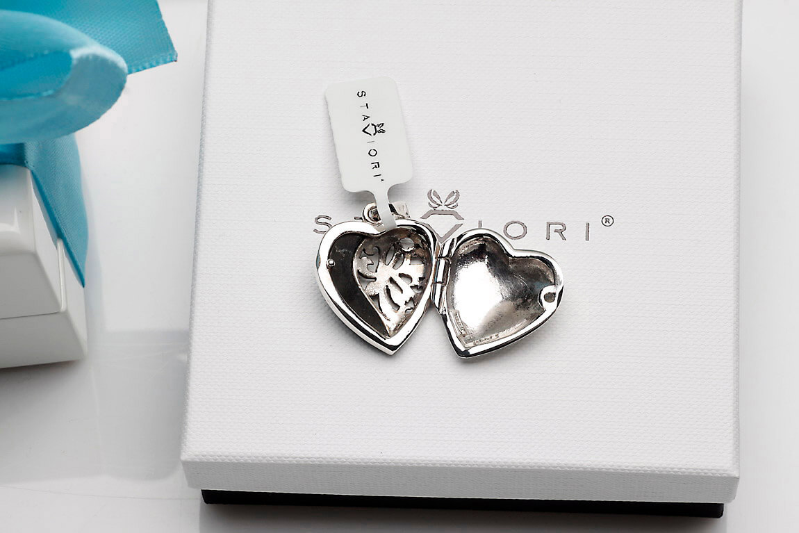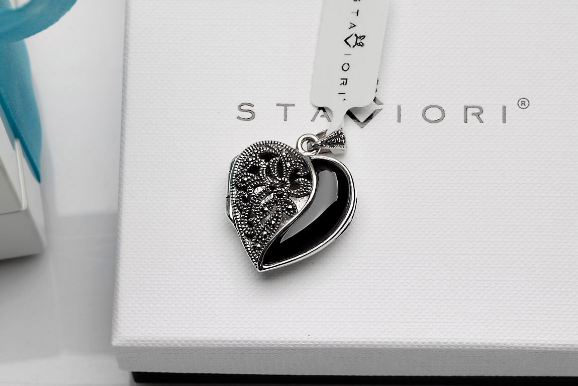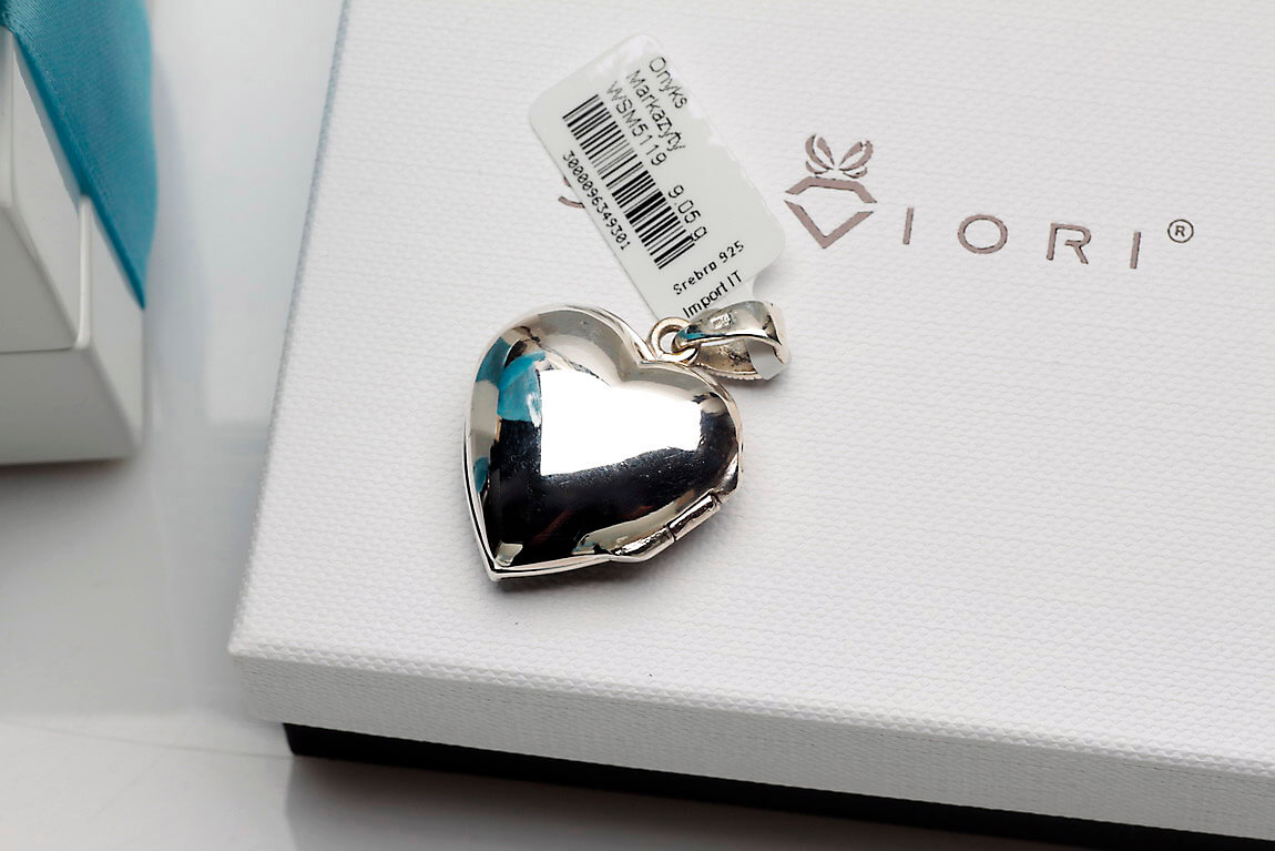 Hõbedast ripats / avatav medaljon – süda – oonüksiga ja markasiitidega