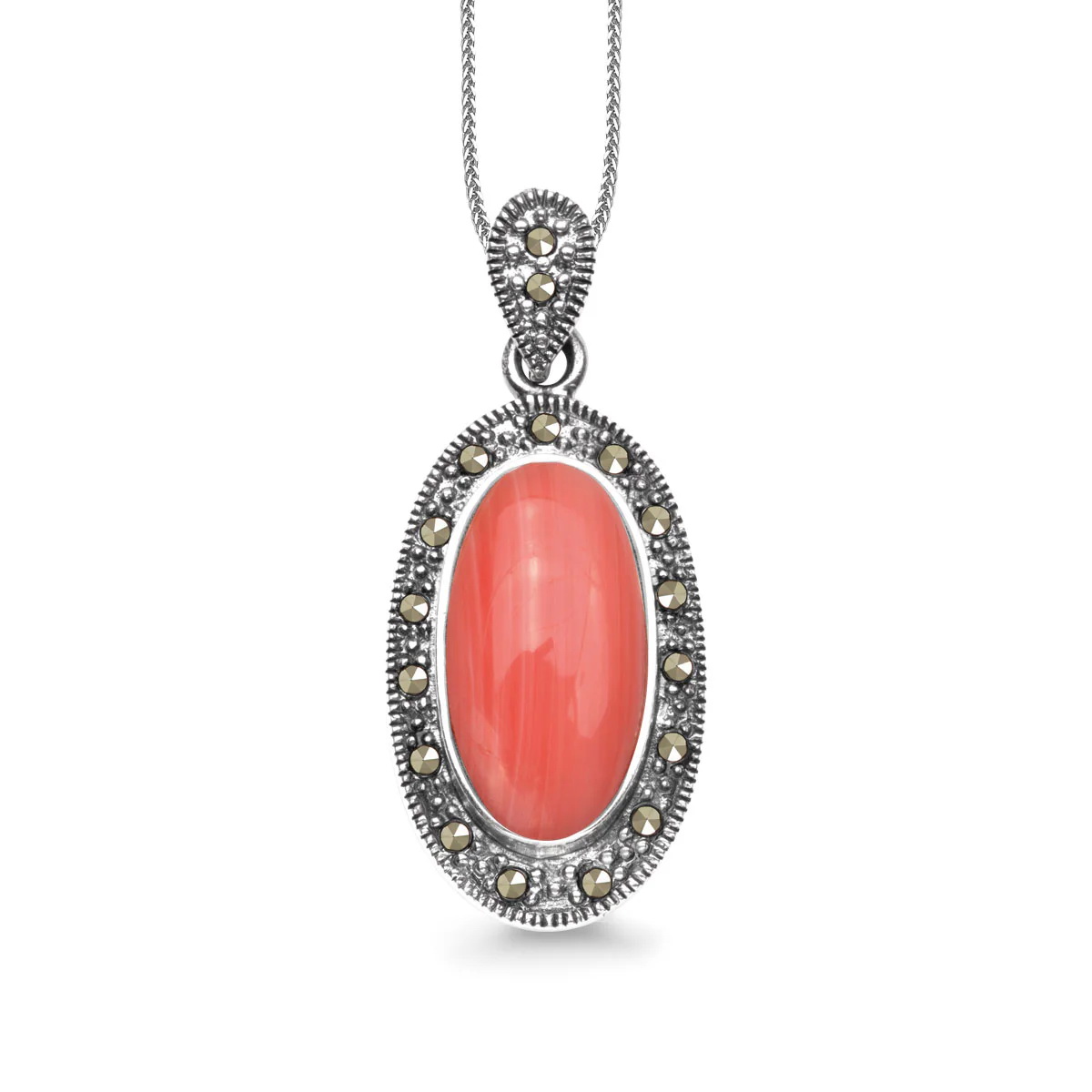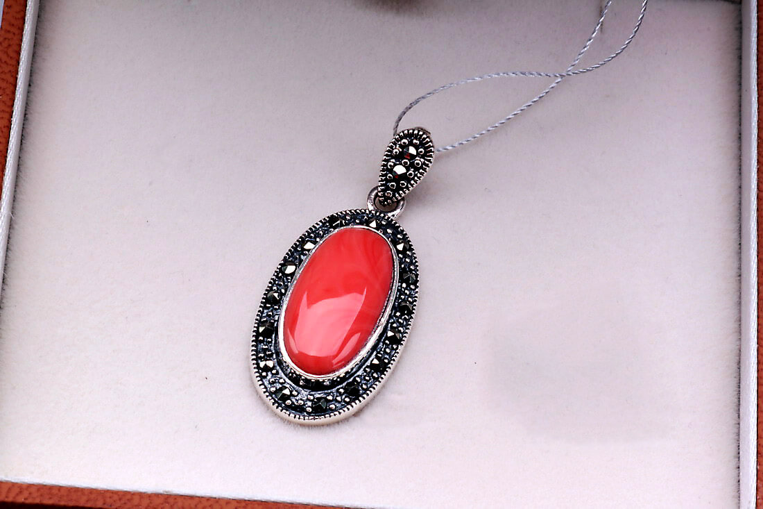 Hõbedast ripats koralli ja markasiitidega