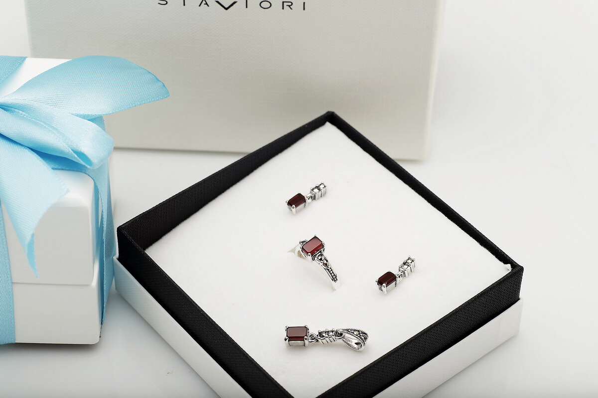 Hõbedast ripats markasiitide ja punase ahhaadiga
