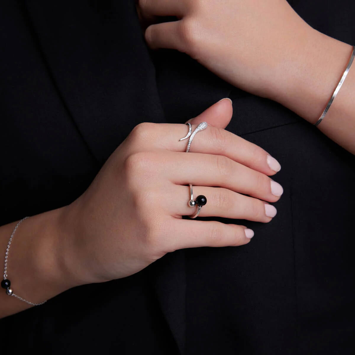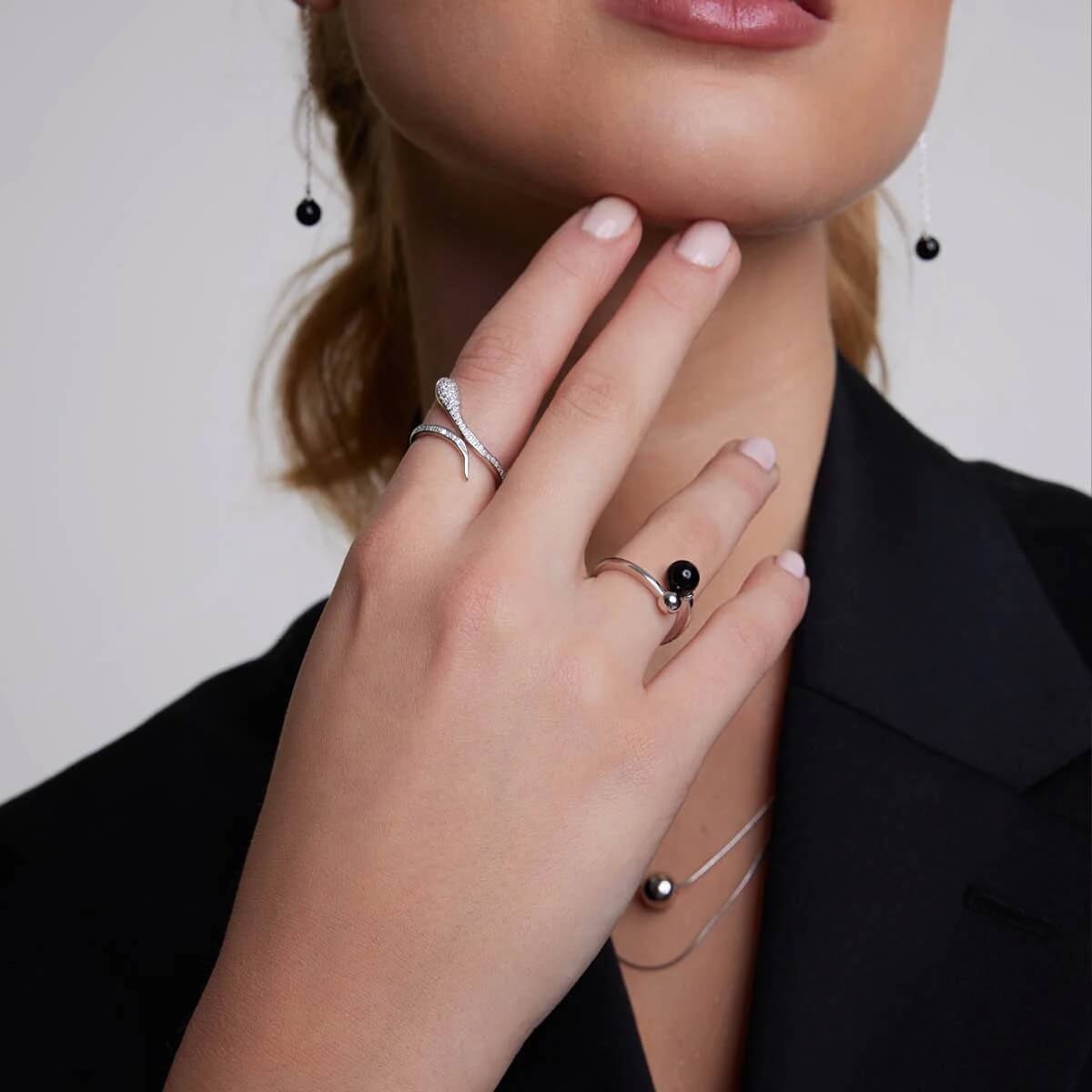 Hõbesõrmus madu – roodiumkattega hõbe ja tsirkoonid