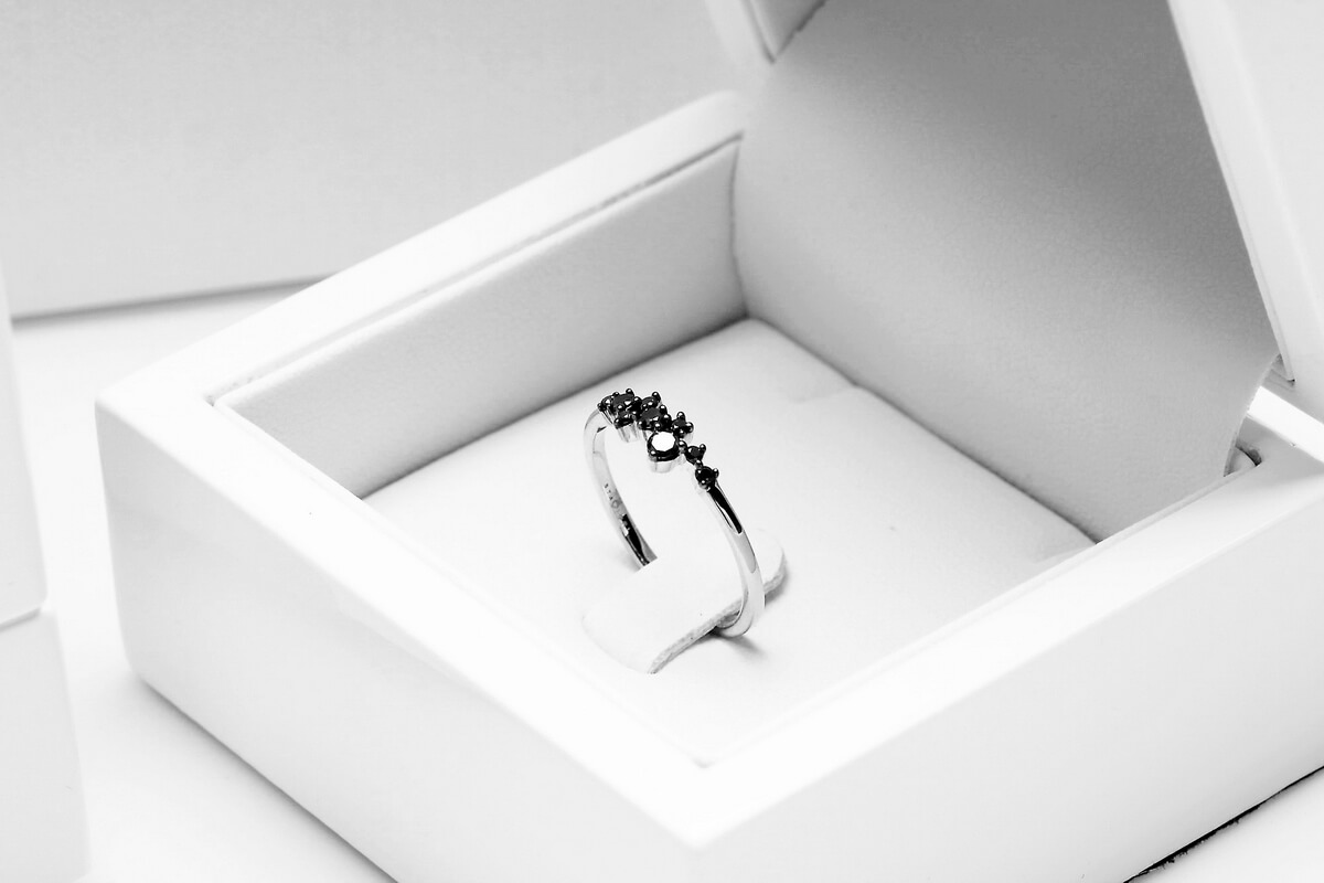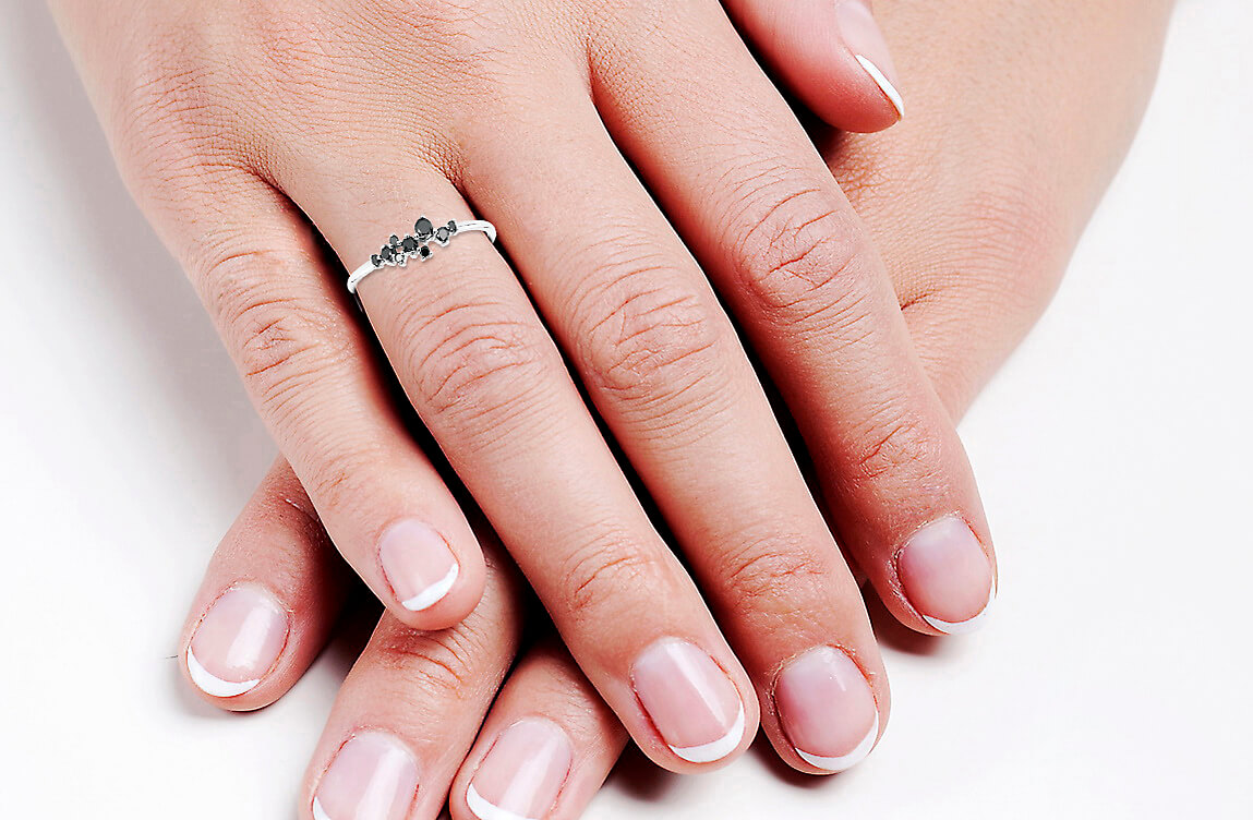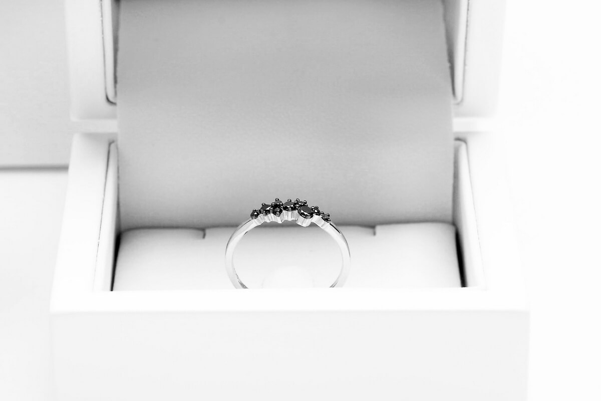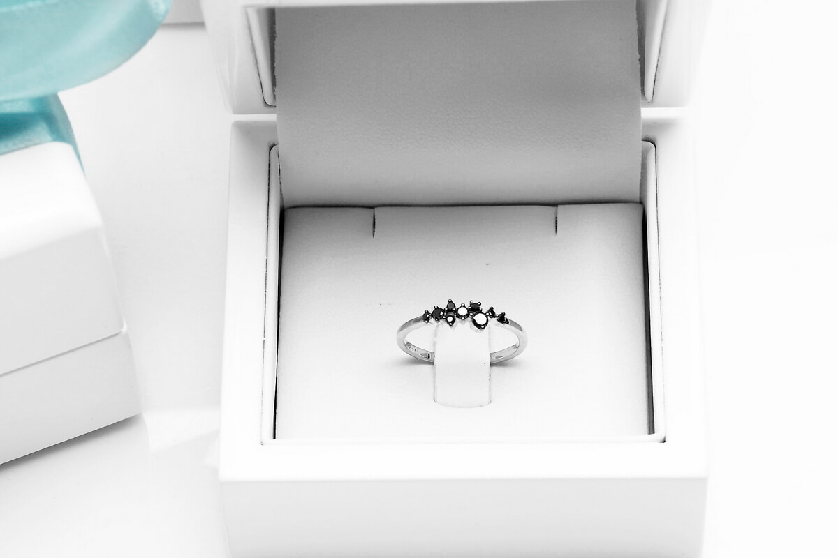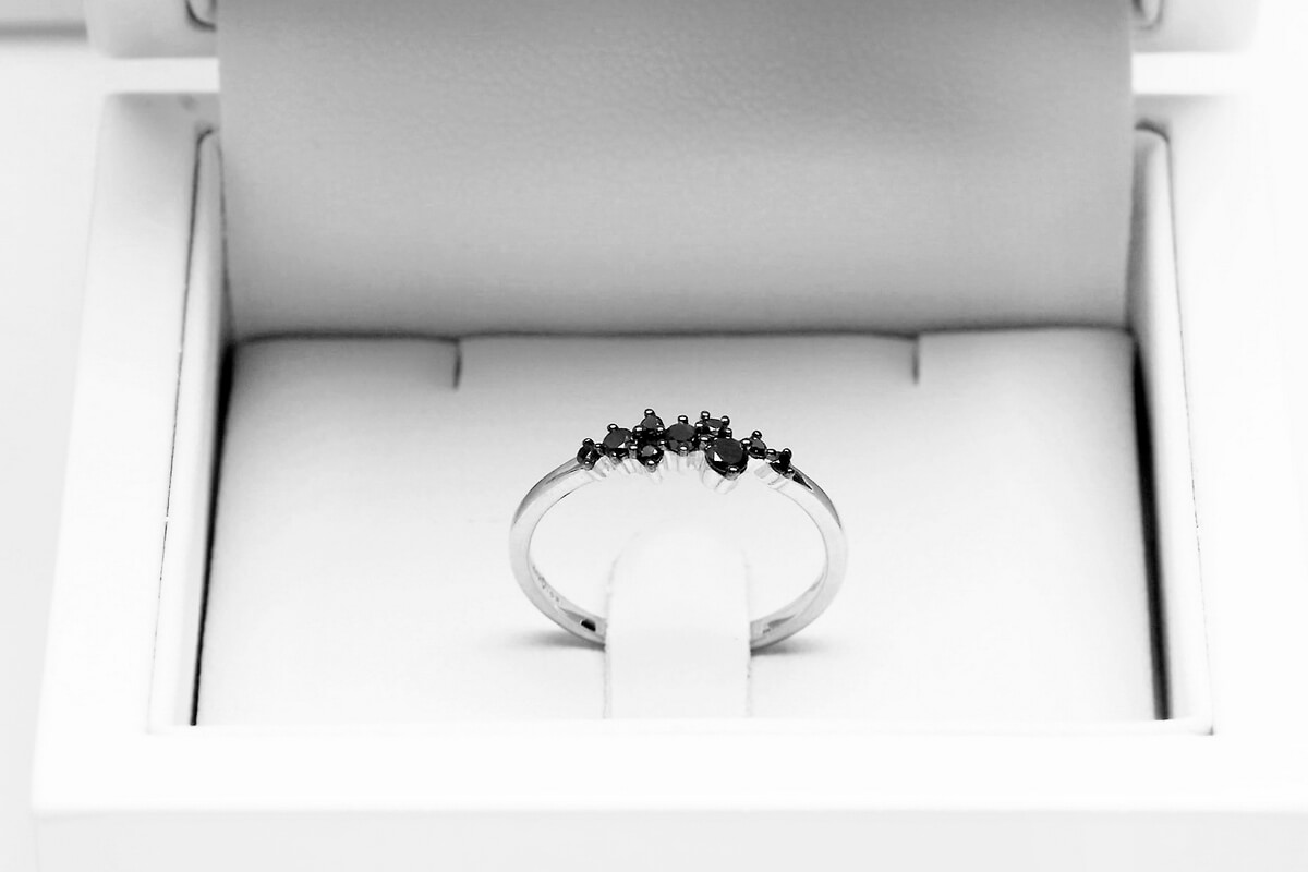 Imeline peenike sõrmus mustade teemantidega valges kullas