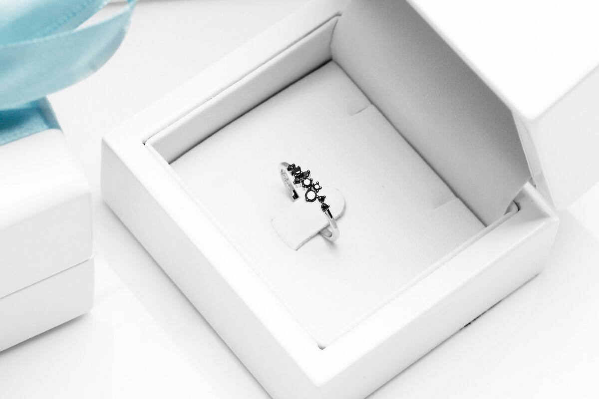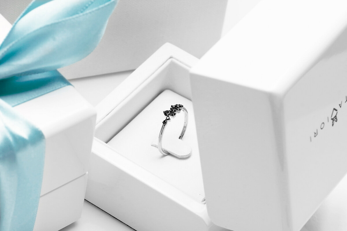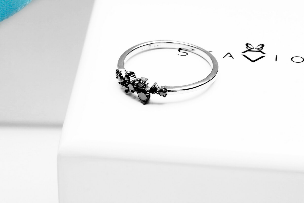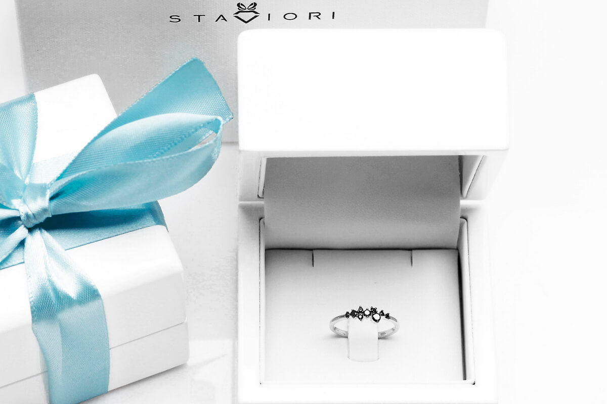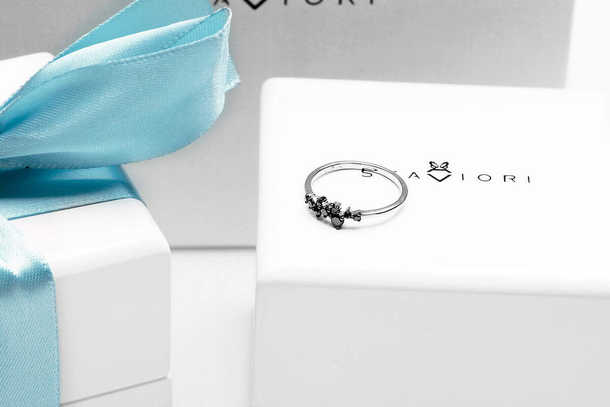 Imeline peenike sõrmus mustade teemantidega valges kullas