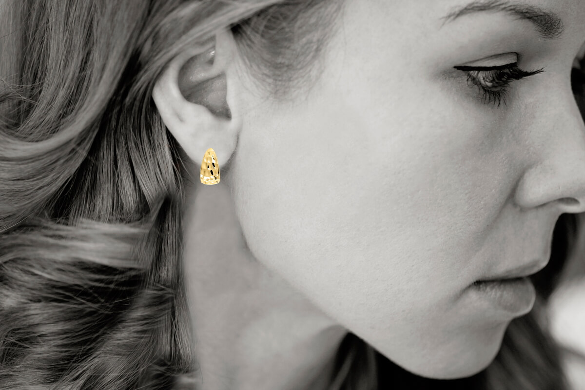 Kollase kullaga kaetud hõbedased haamrimustrilised kõrvarõngad