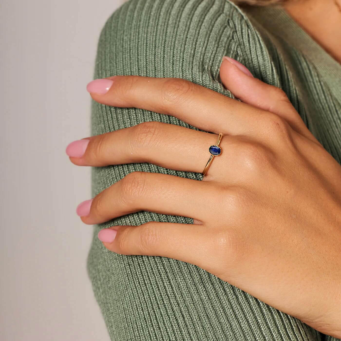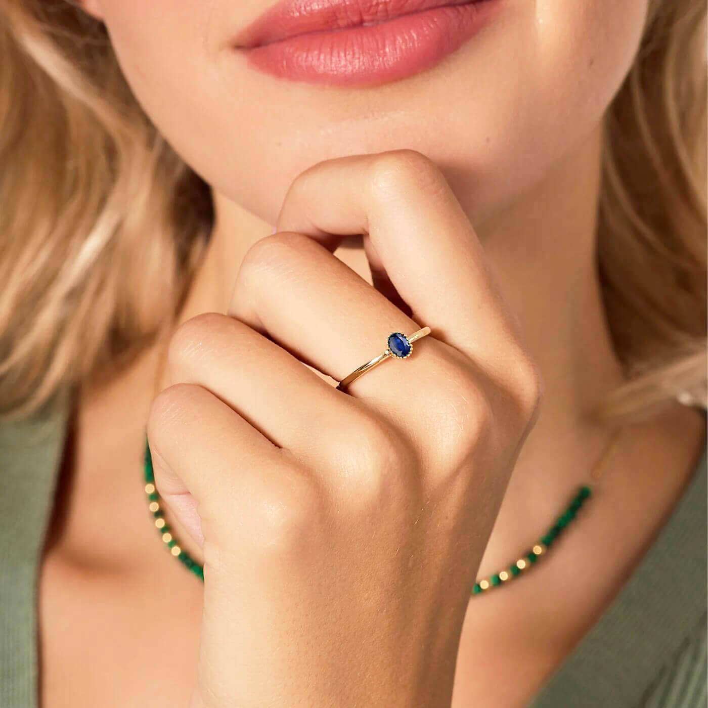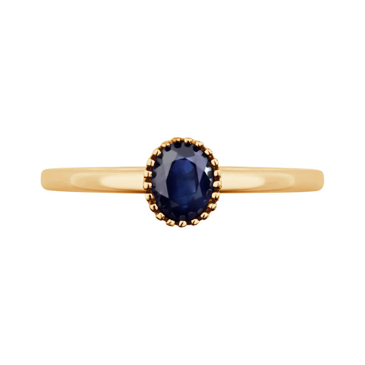 Kaunis, peenike kuldne sõrmus, kaunistatud poolkaraadise safiiriga.