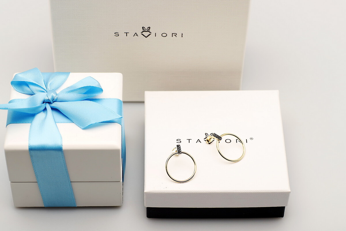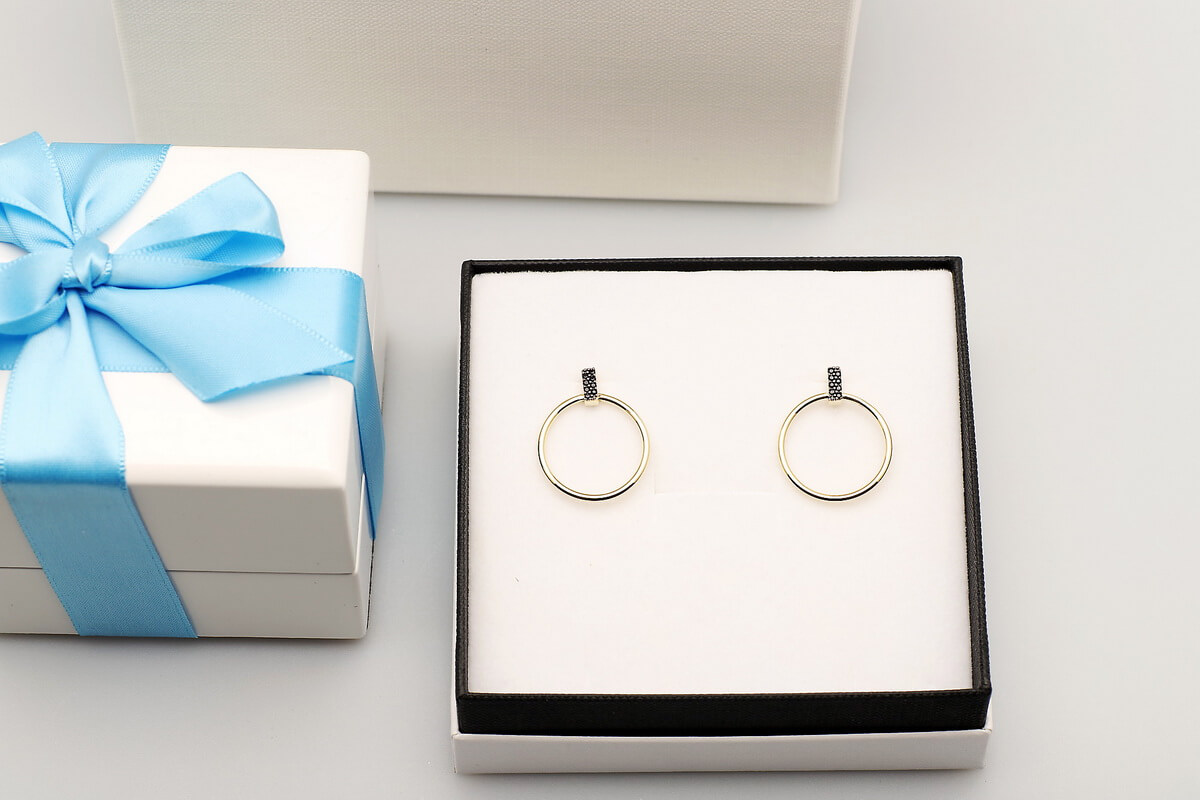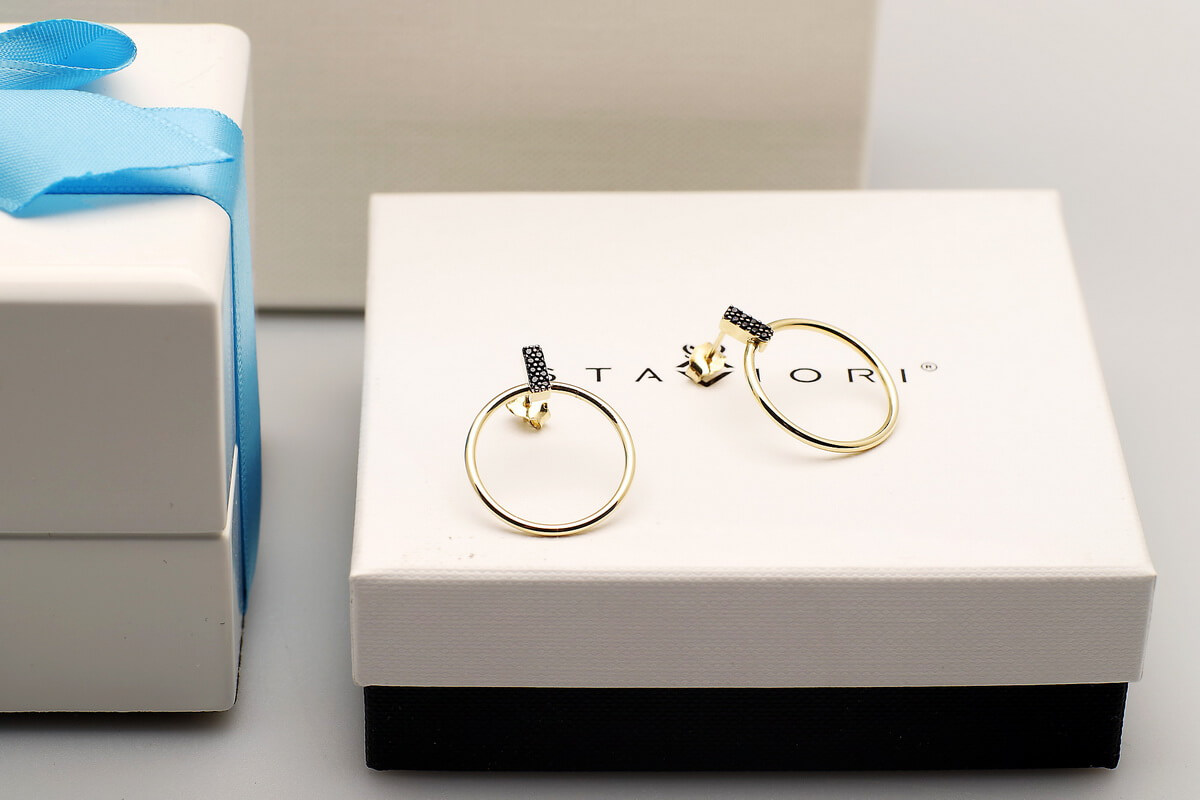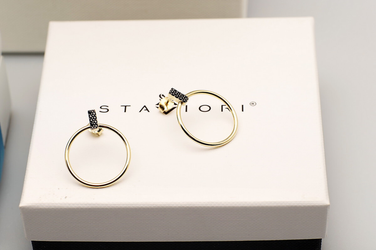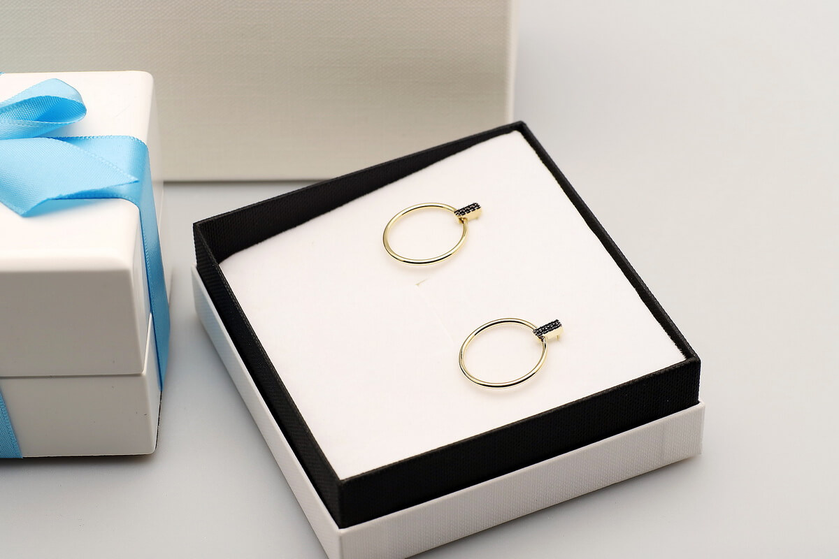 Kollased kõrvarõngad-rõngad mustade tsirkoonidega 333