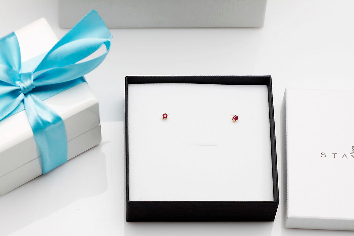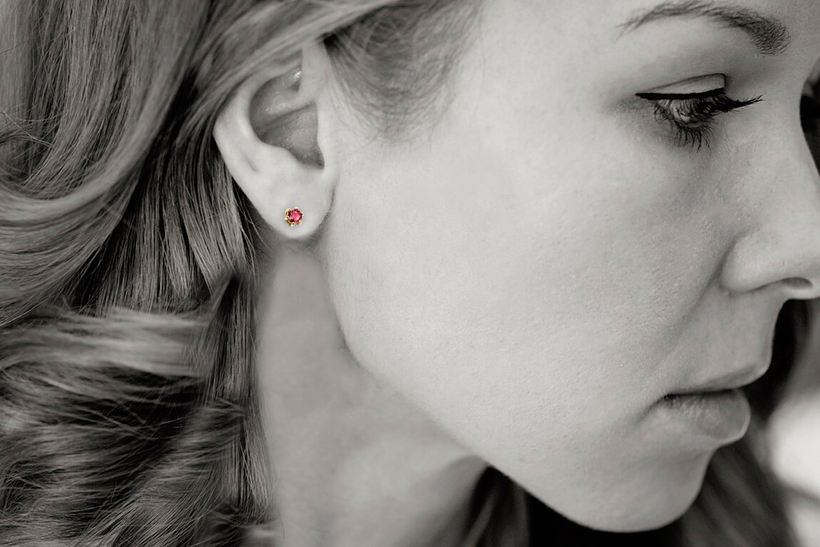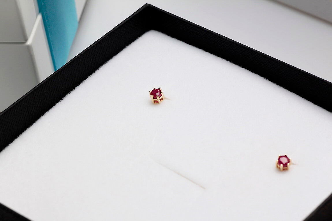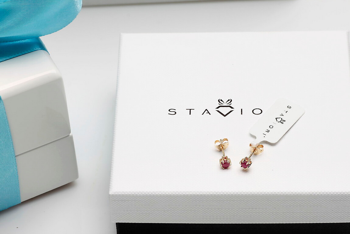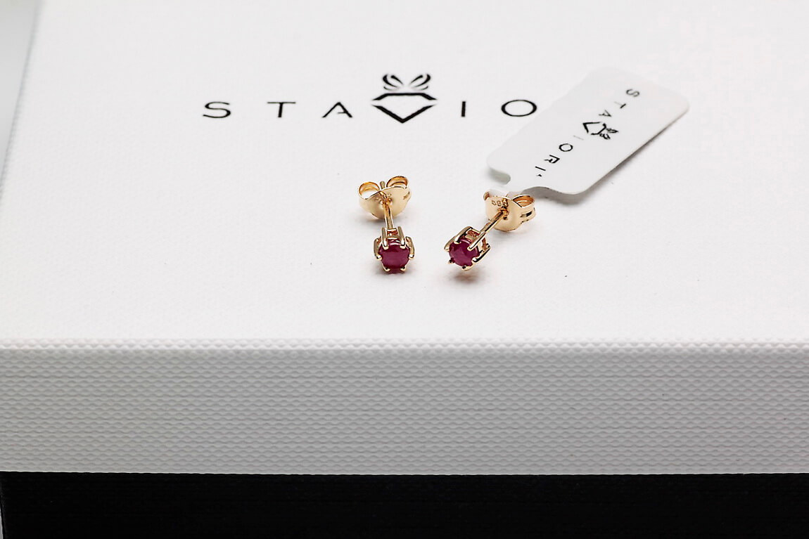 Kollased kuldkõrvarõngad rubiinidega