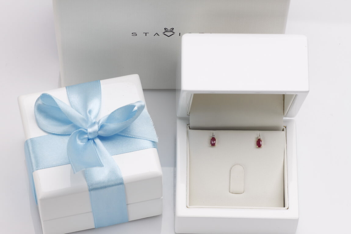 Kõrvarõngad kuld punaste rubiinide ja teemantitega