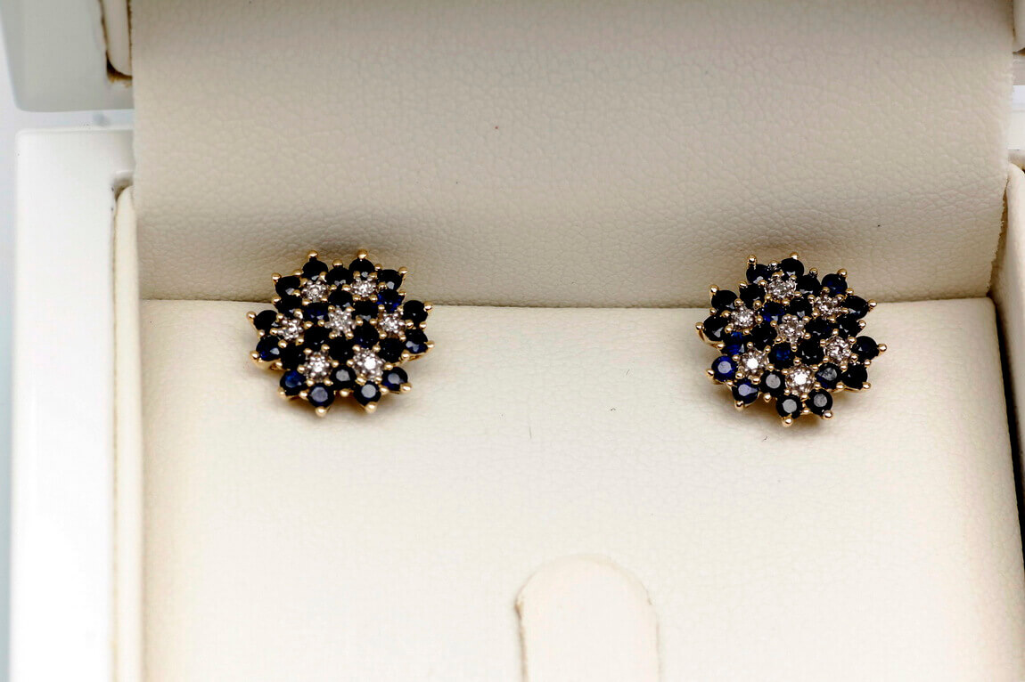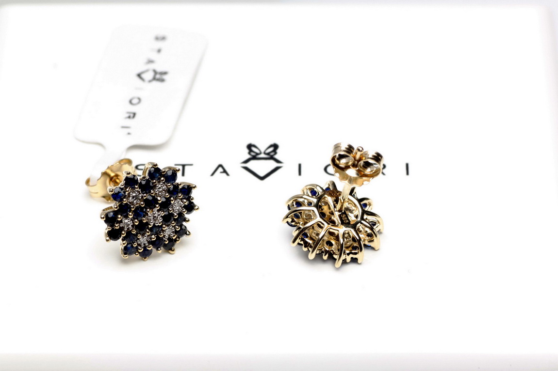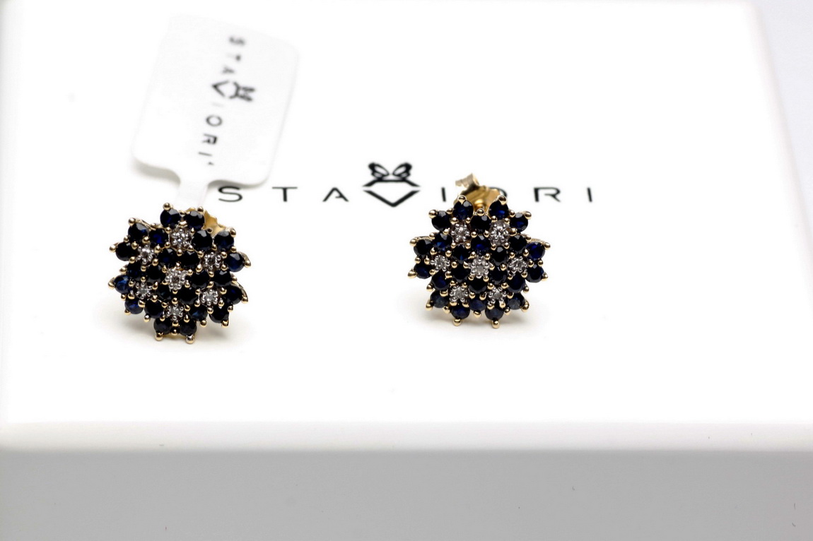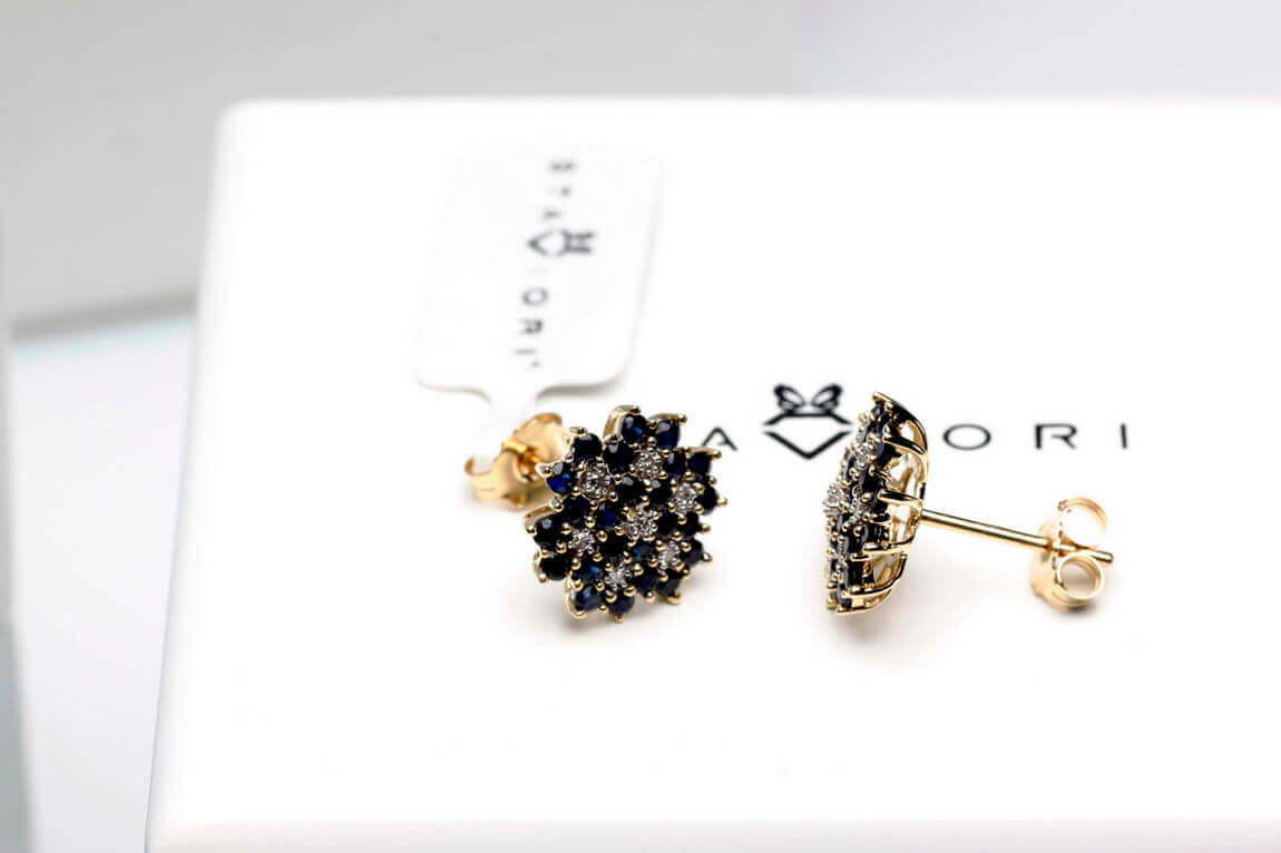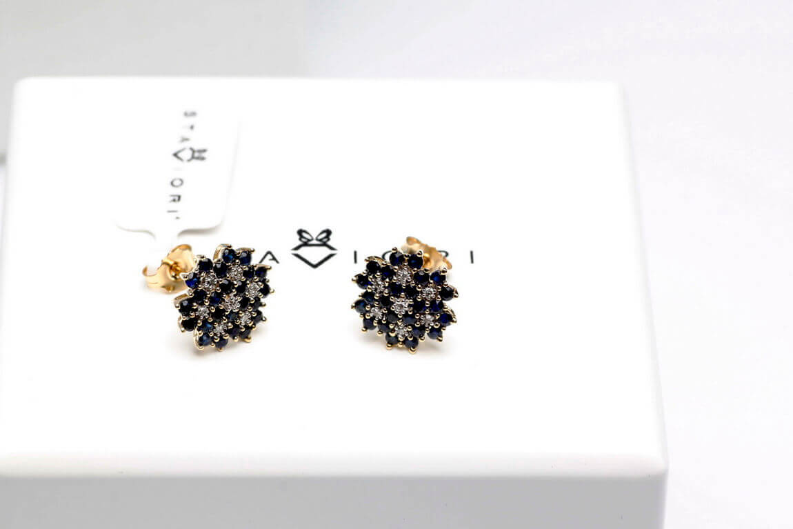 Kõrvarõngad kuld siniste safiiride ja teemantitega