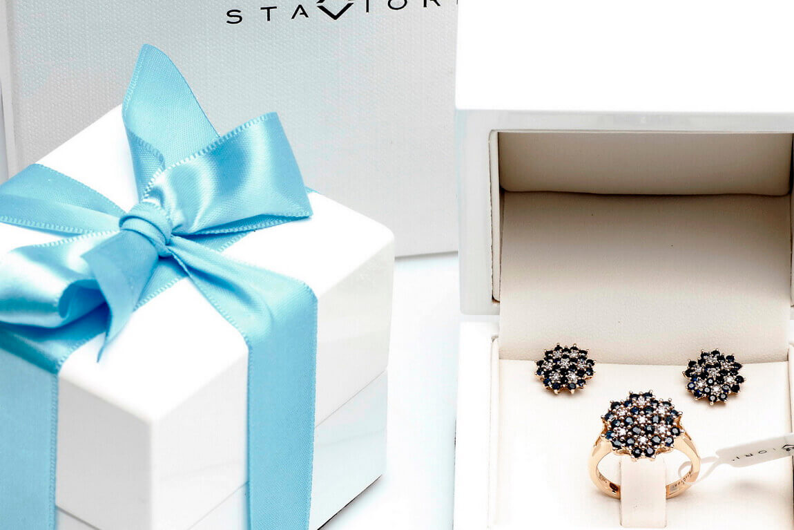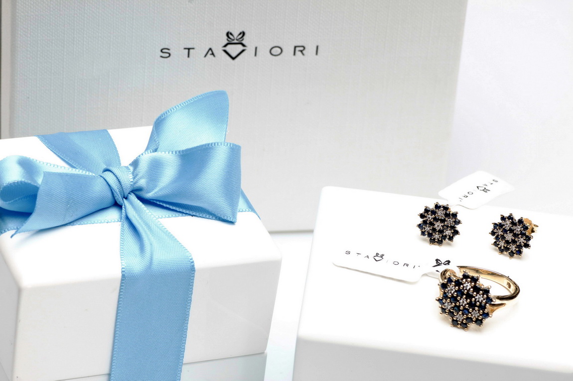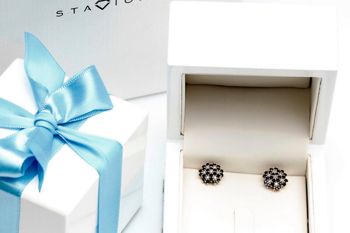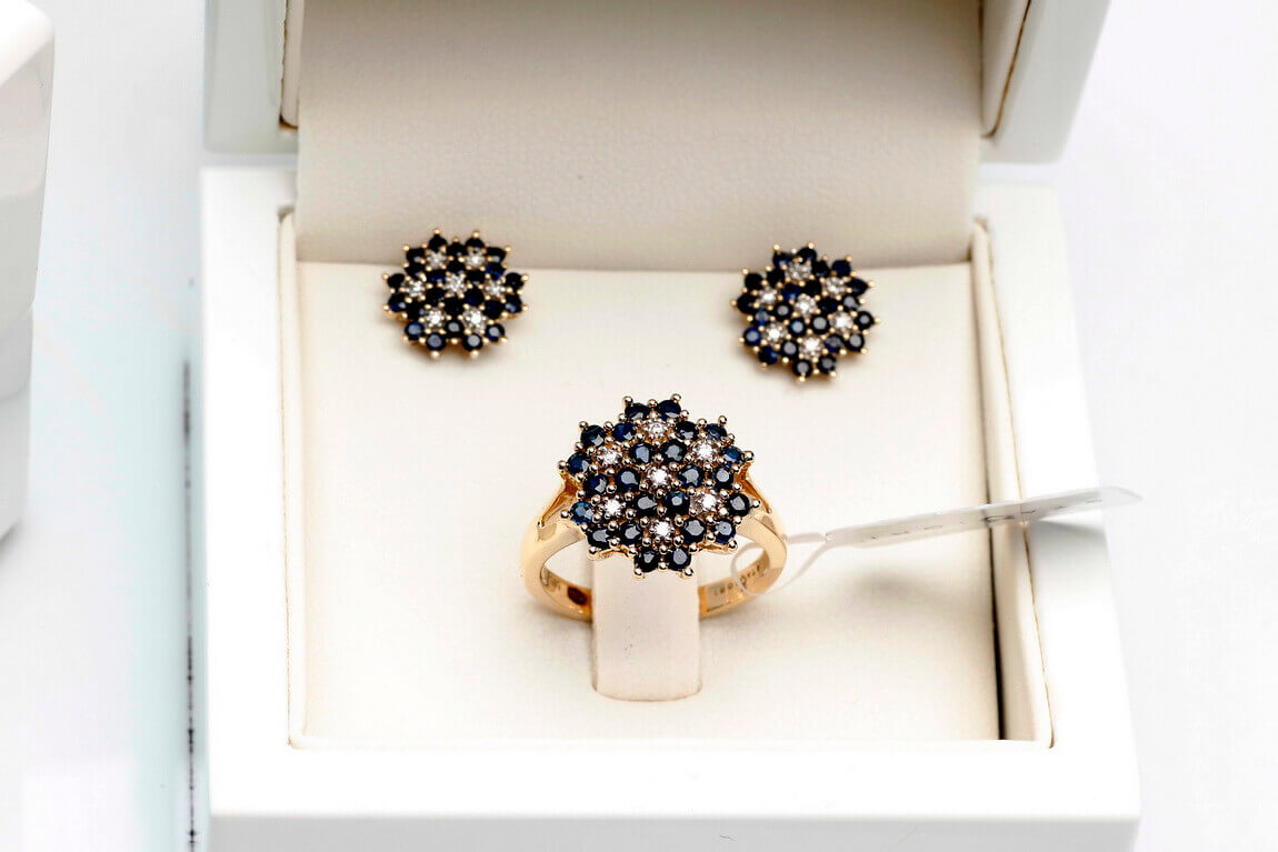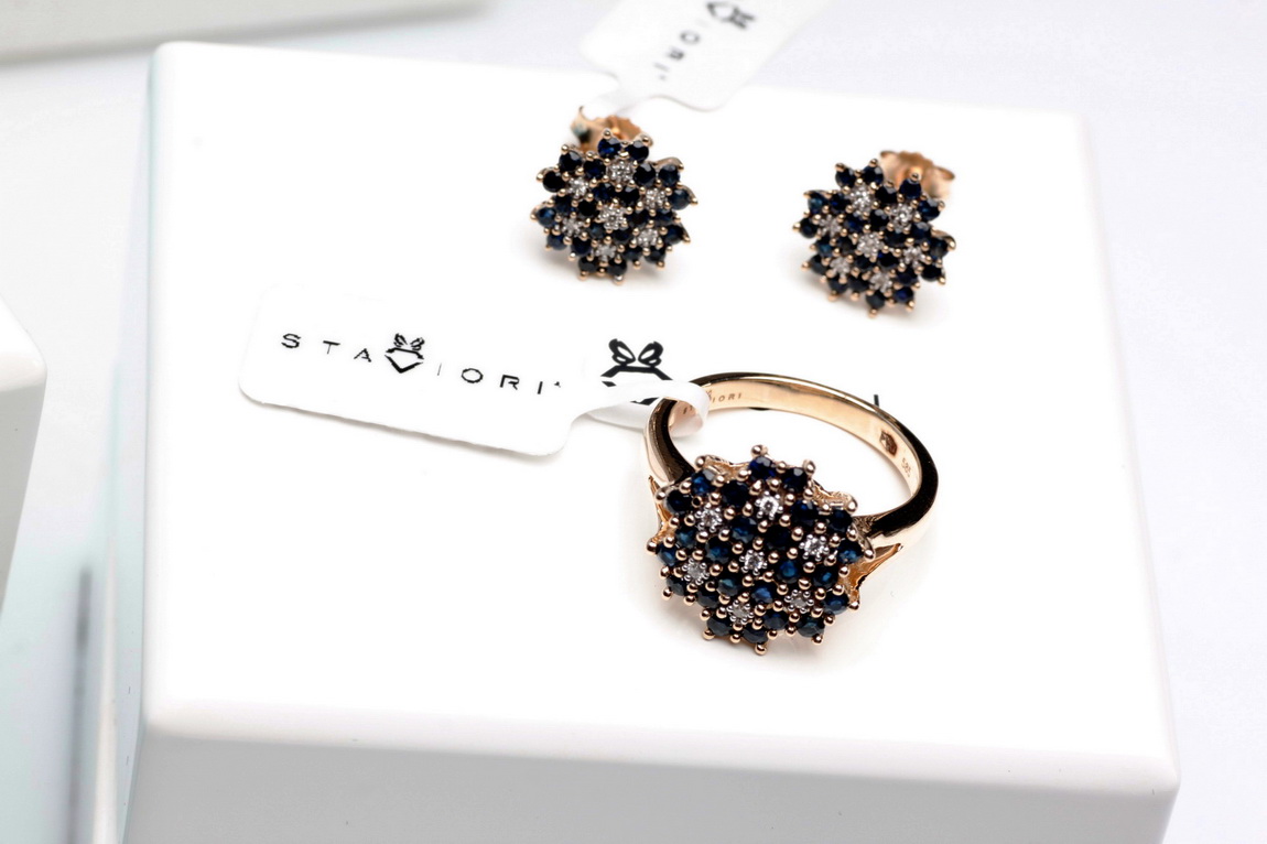 Kõrvarõngad kuld siniste safiiride ja teemantitega