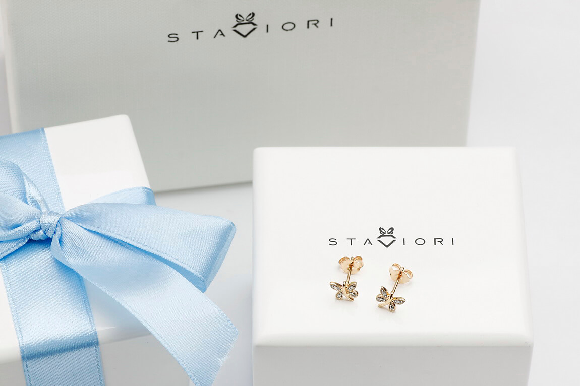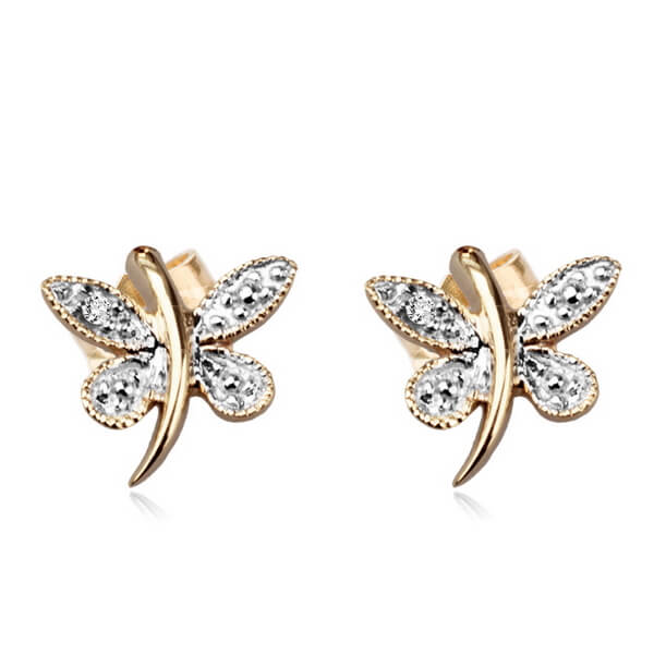 Kõrvarõngad liblikad teemantitega kollases kullas