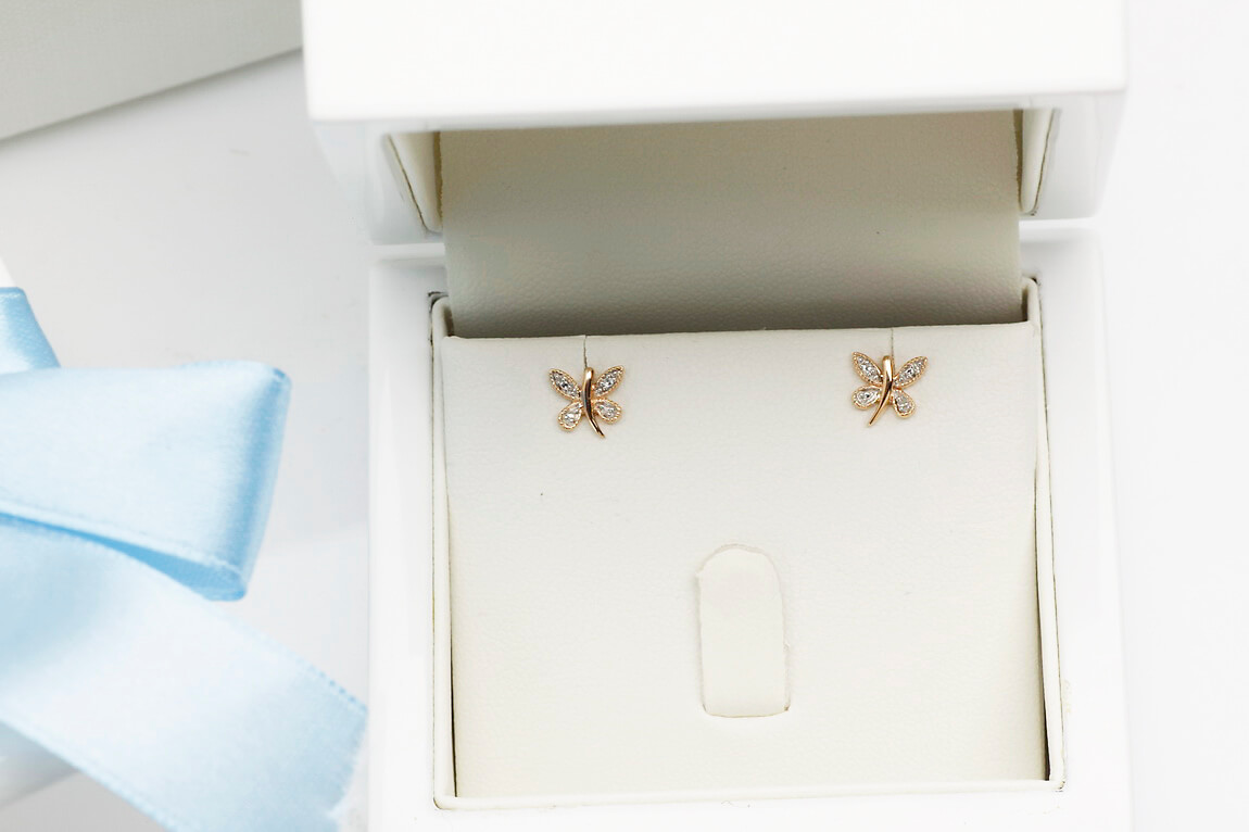 Kõrvarõngad liblikad teemantitega roosas kullas