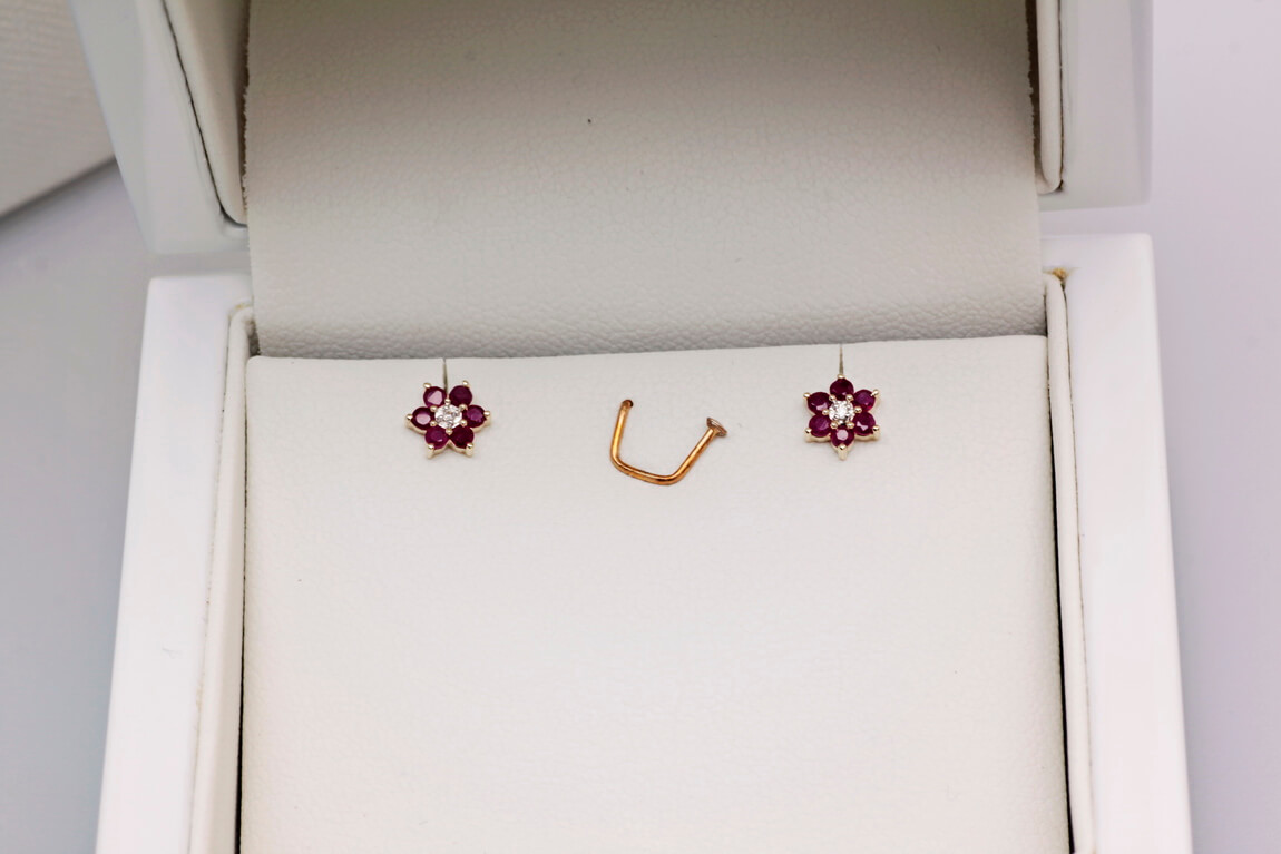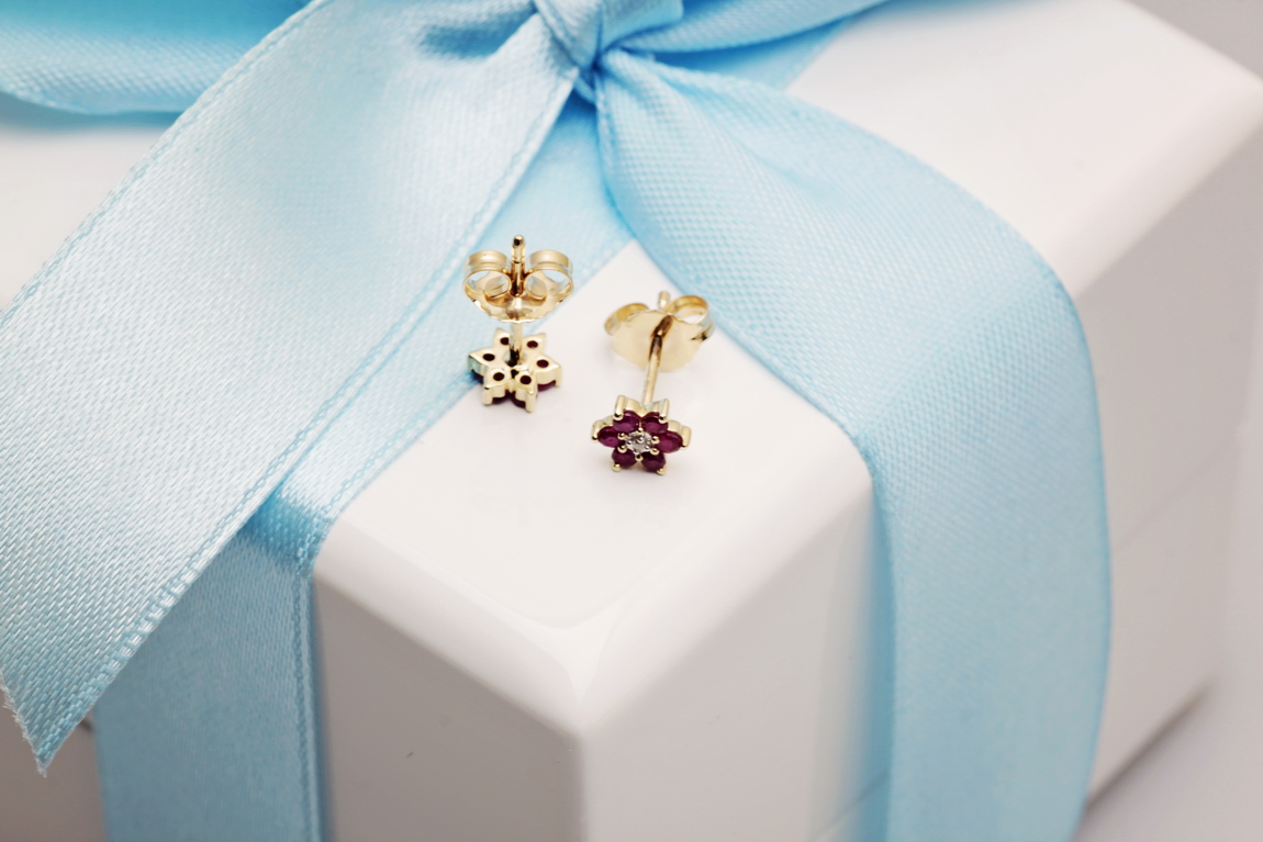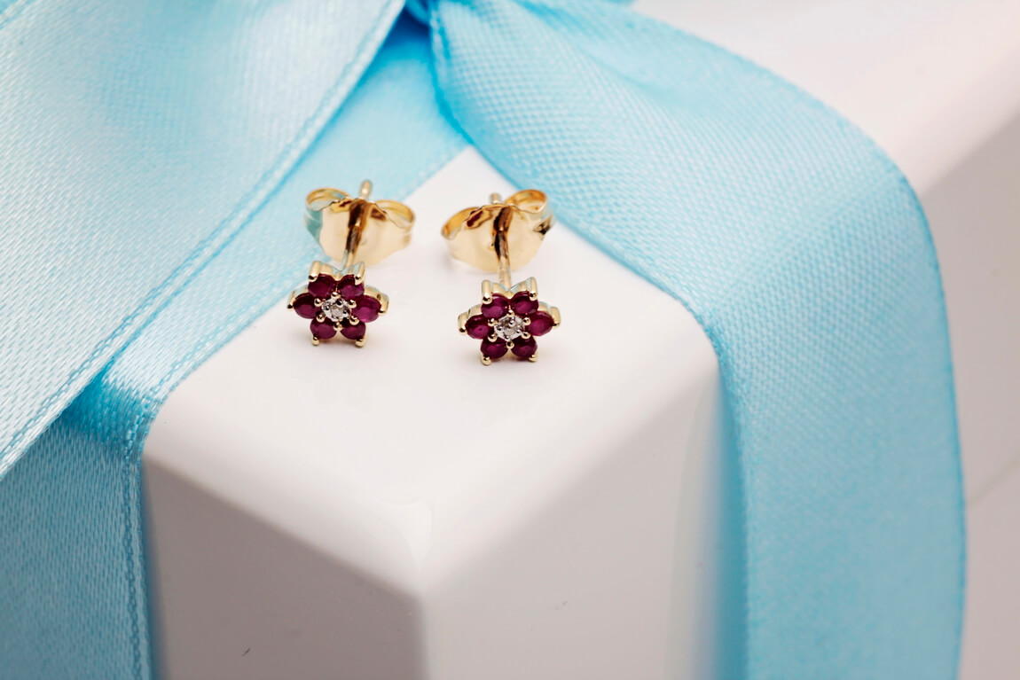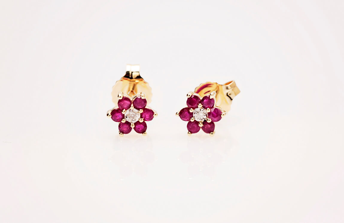 Kõrvarõngad lilled kollane kuld rubiinide ja teemantitega