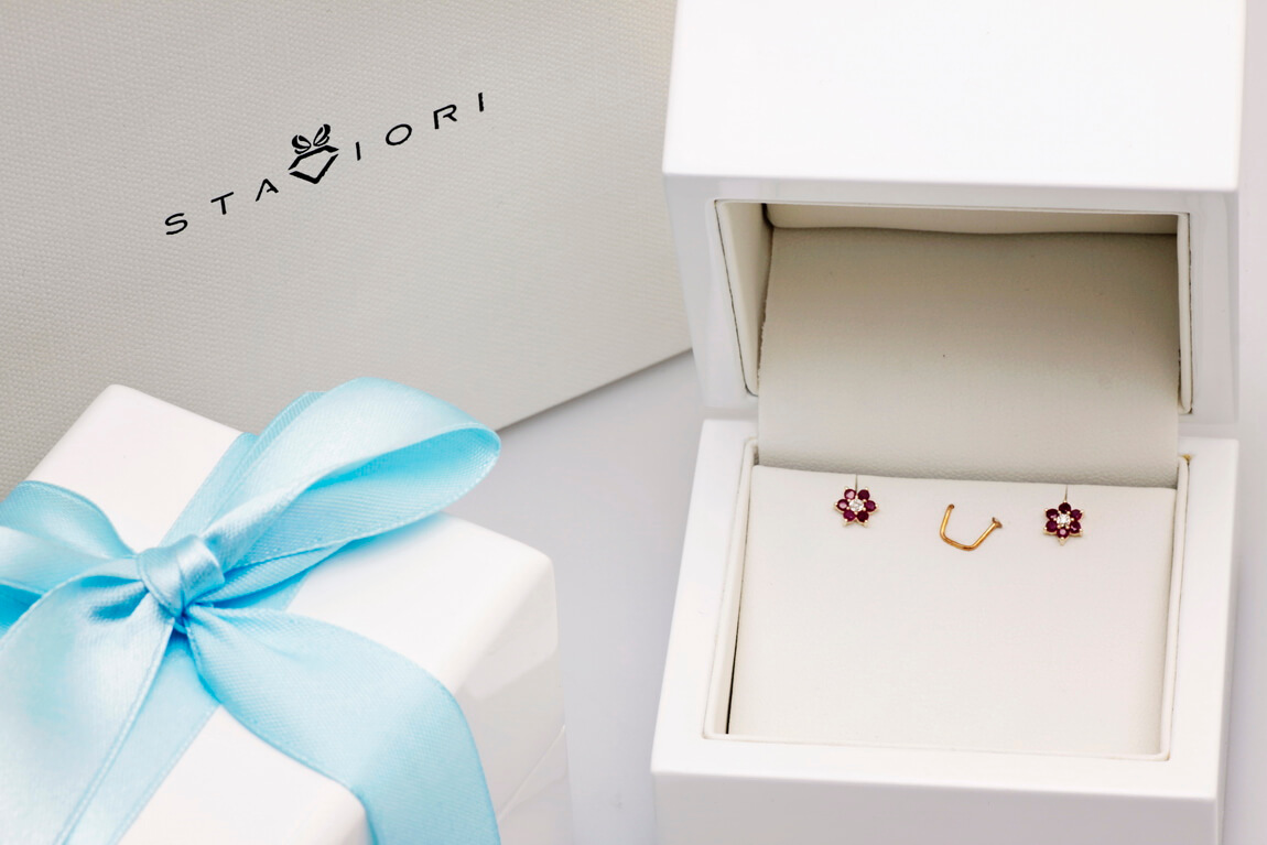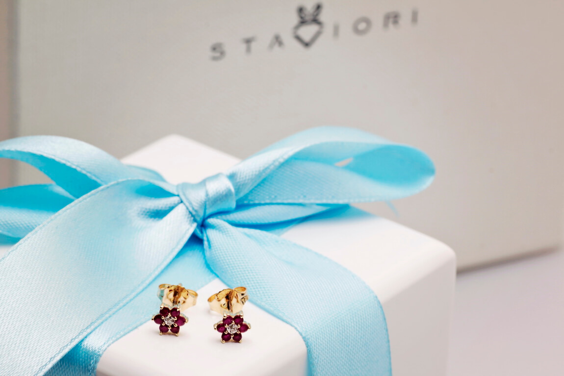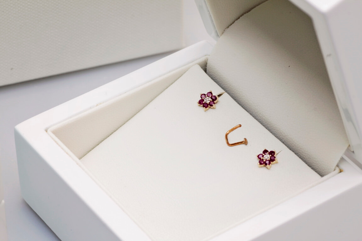 Kõrvarõngad lilled kollane kuld rubiinide ja teemantitega