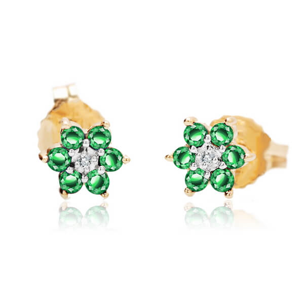 Kõrvarõngad lilled kollane kuld smaragdide ja teemantitega
