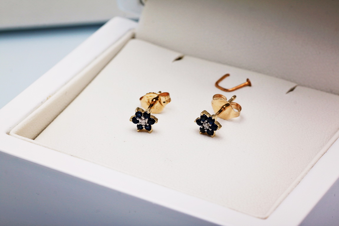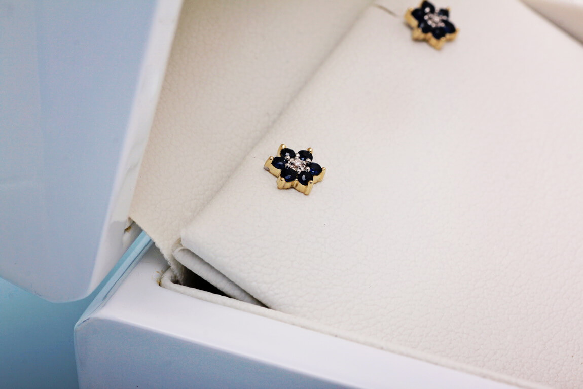 Kõrvarõngad õrna kullaga safiiride ja teemantitega