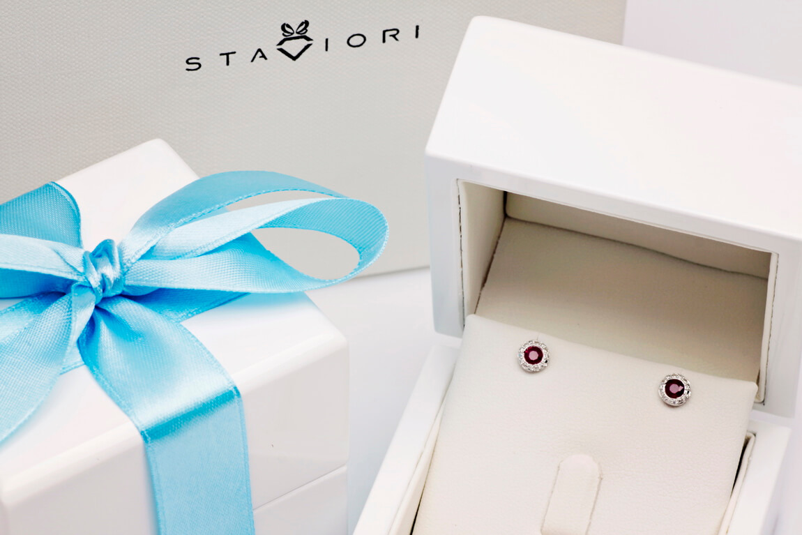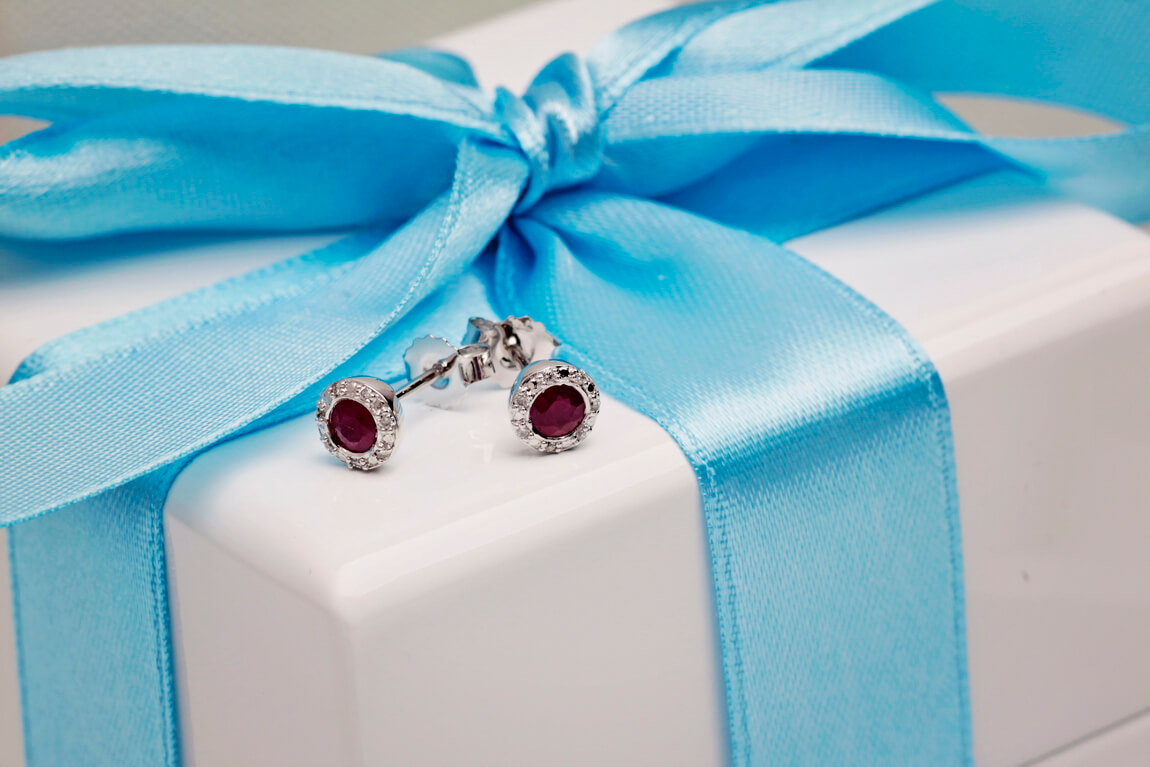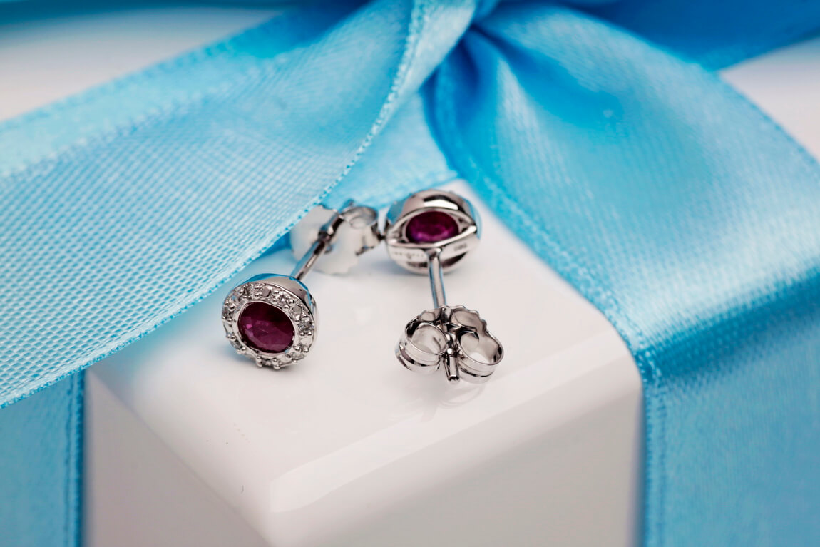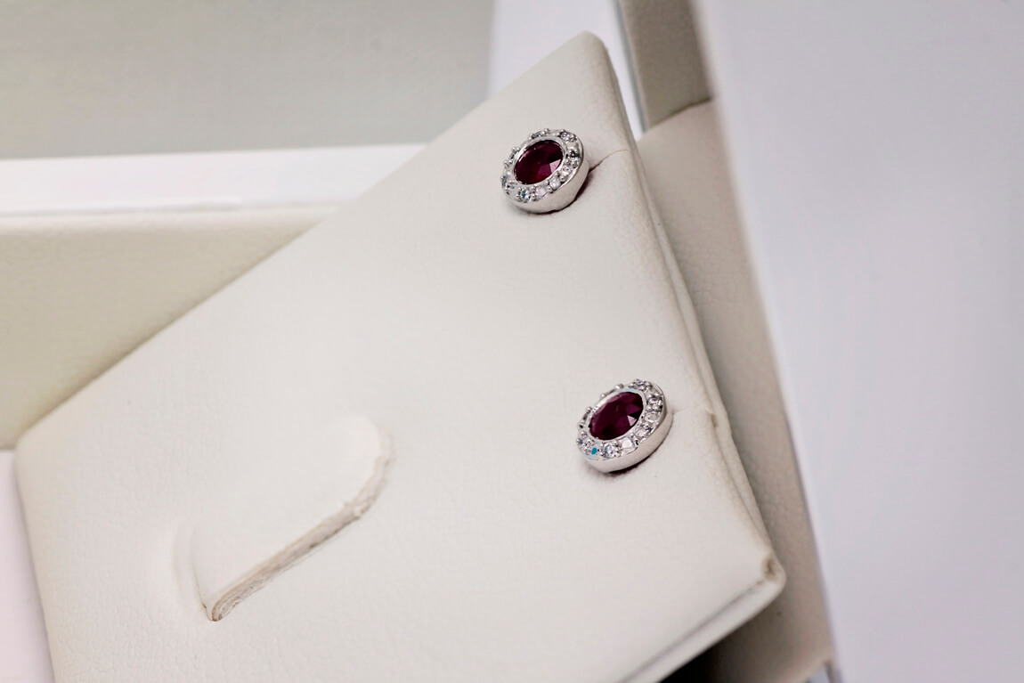 Kõrvarõngad valgest kullast rubiinide ja teemantidega – KBD2950R