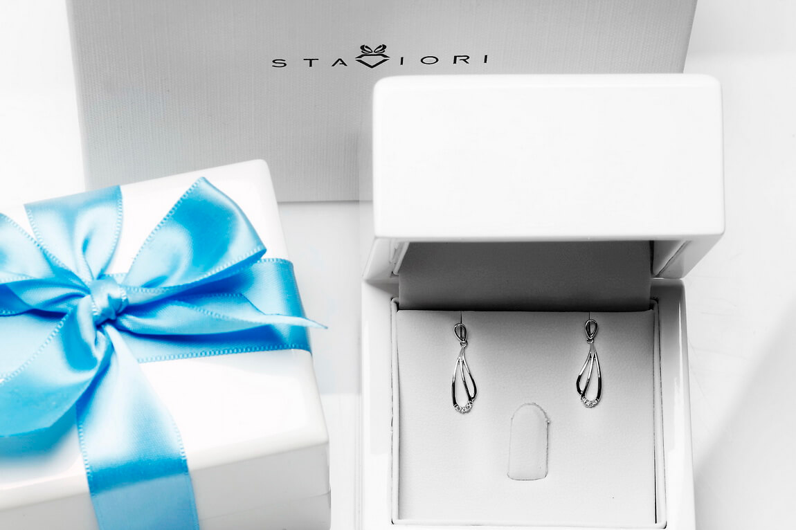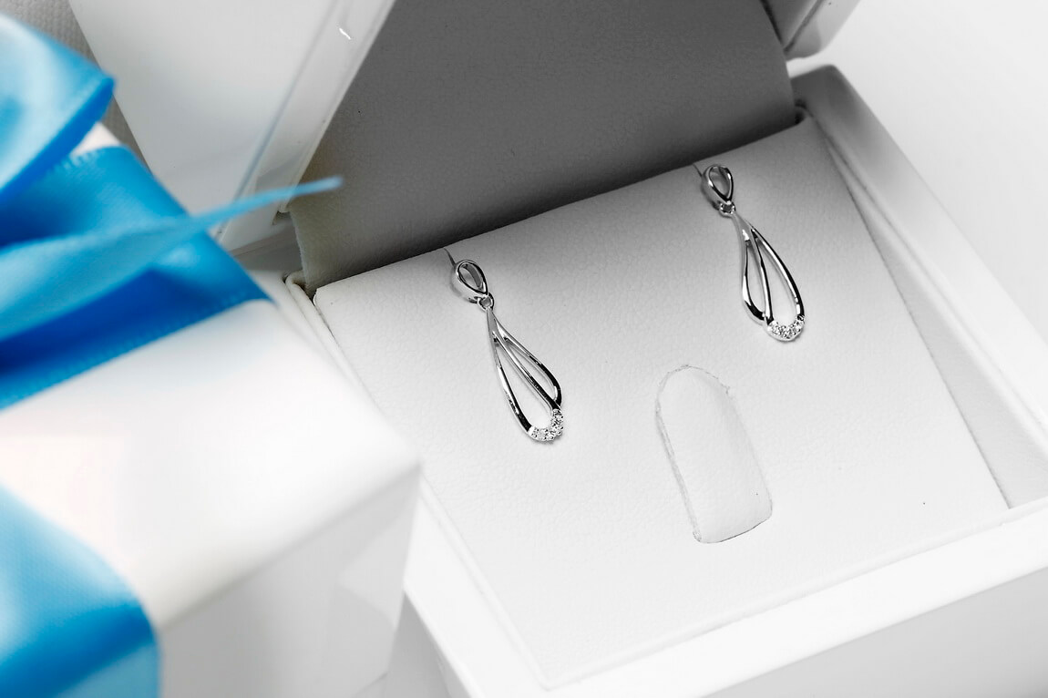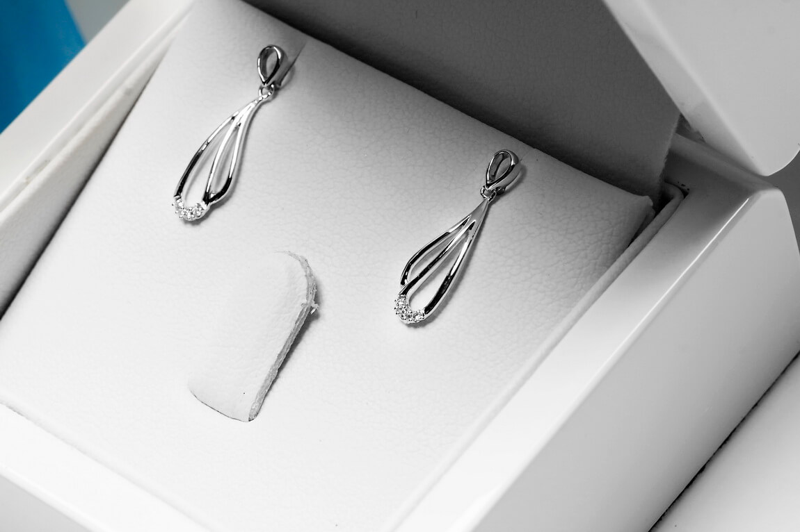 Kõrvarõngad valgest kullast teemantitega – KBD3884