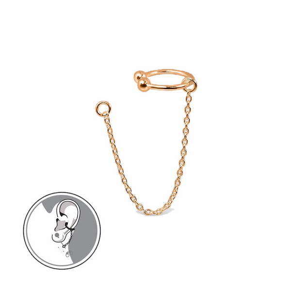 Pikk kõrva mansett, mille lõpus kinnitus teise kõrvarõnga külge. Valmistatud hõbedast 0,925 ja kaetud 18K kullaga.