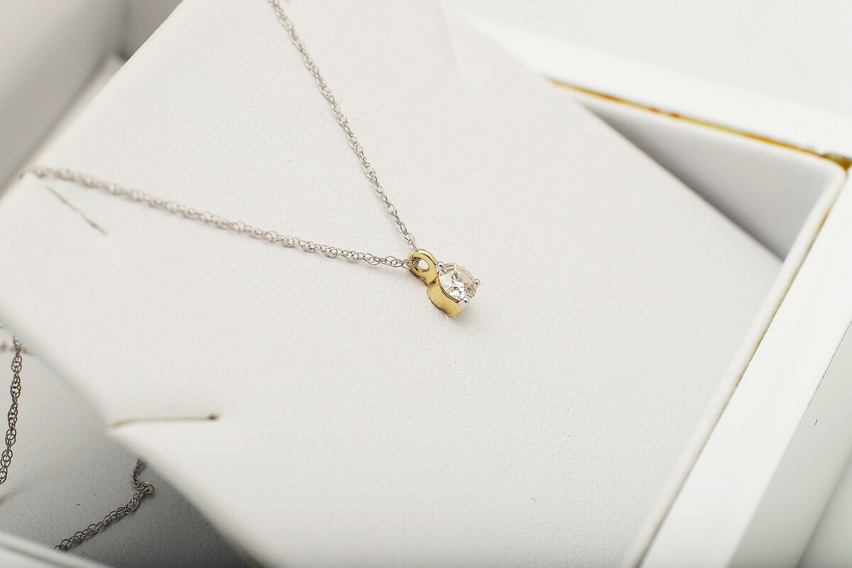 Kuldne kaelakee briljandiga 0,15ct valge või kollase ketiga