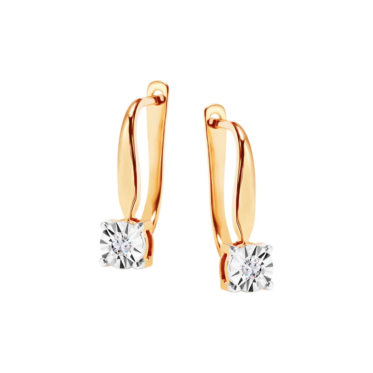 Kuldne kõrvarõngad teemantitega, inglise sulguriga – 375