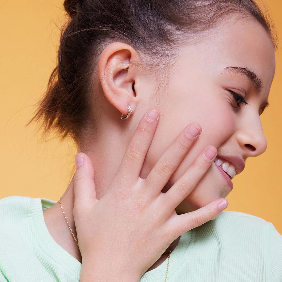 Kuldne kõrvarõngad tsirkoonidega lapsele