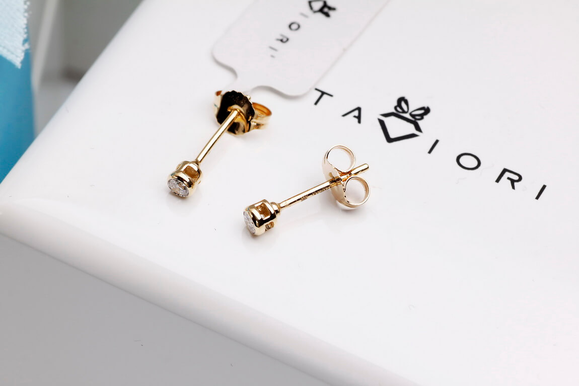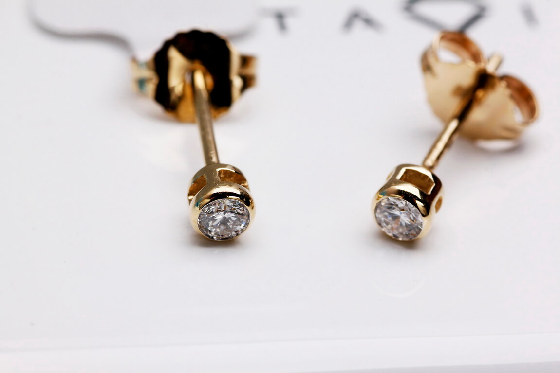 Kuldne kõrvarõngas briljantidega 0,10ct siledas raamistuses