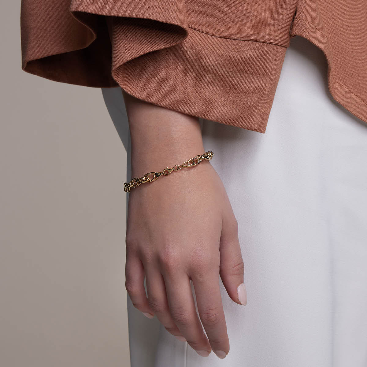 14-karaadisest kollasest kullast käevõru klassikalise ROLO lüliga. Selle tugevad, ümarad lülid peegeldavad valgust kaunilt, luues luksuse ja ajatu mulje. Sobib suurepäraselt nii üksi kandes kui ka lemmikvõludega. Ideaalne naistele, kes hindavad silmatorkavaid ehteid ja võimalust neid ise kujundada. ROLO lüli sobib ka meestele.
