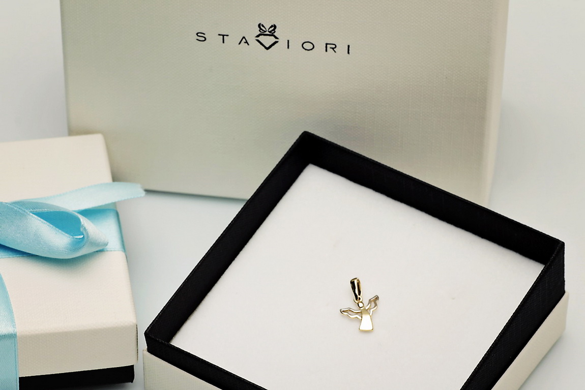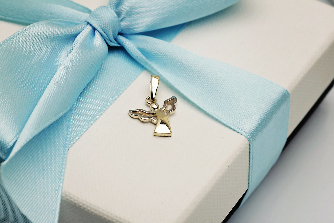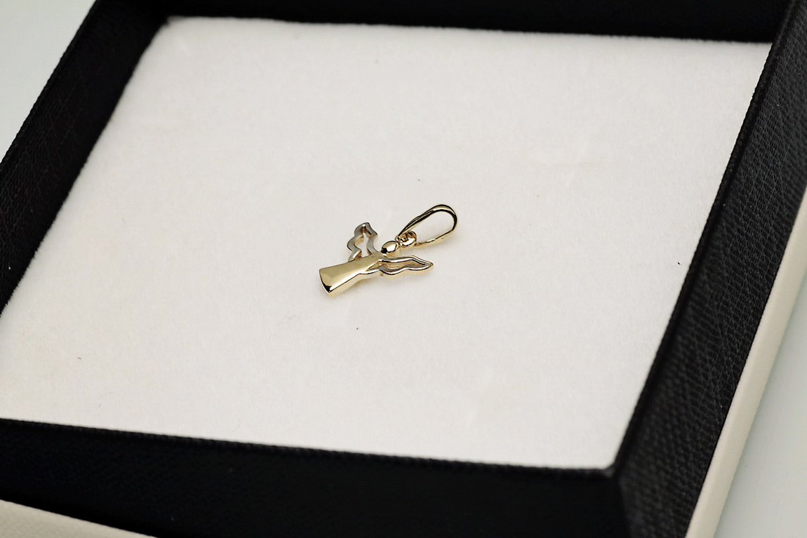 Armas inglikujuline ripats, valmistatud kollasest kullast prooviga 0,333. Kergelt tõstetud tiivad roodiumkattega lisavad sellele peent kontrasti ja erakordset võlu.