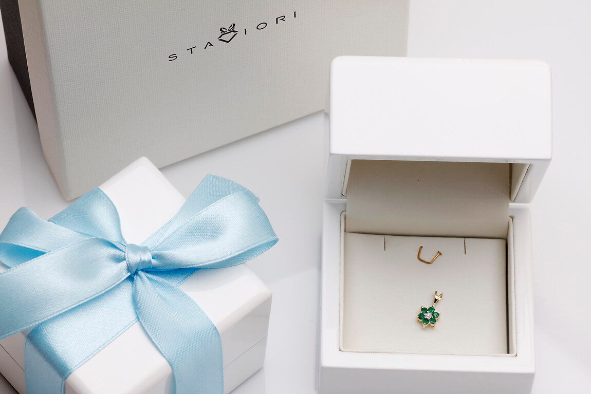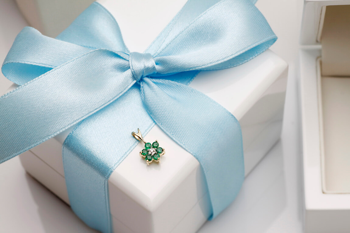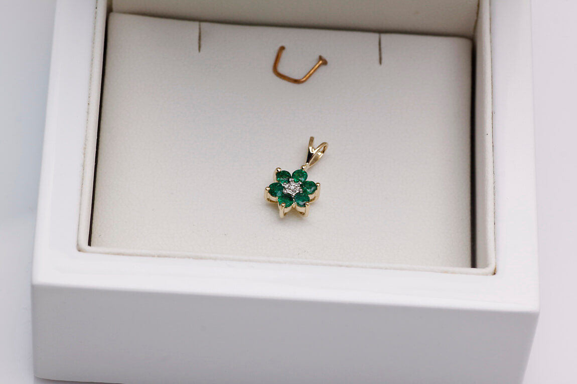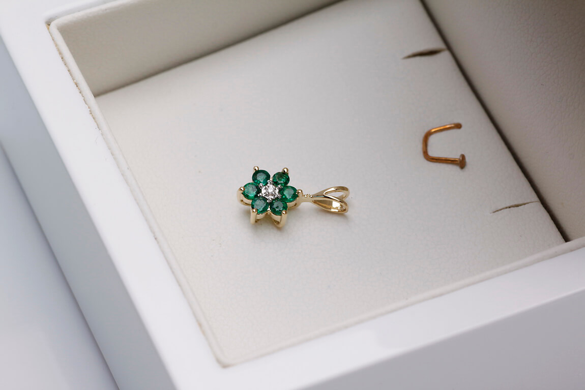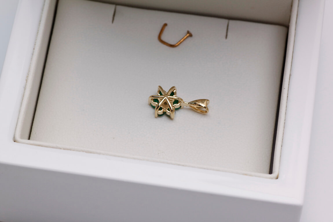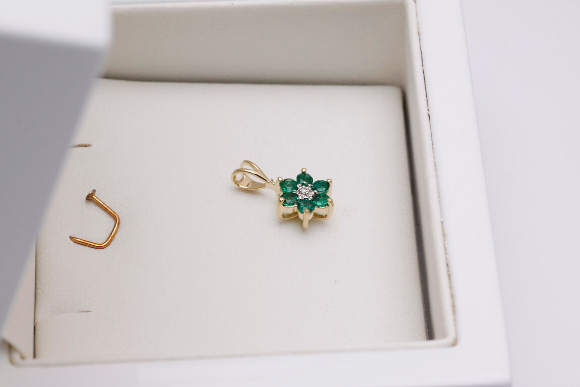 Kuldne ripats õie kujul – smaragdide ja briljantidega