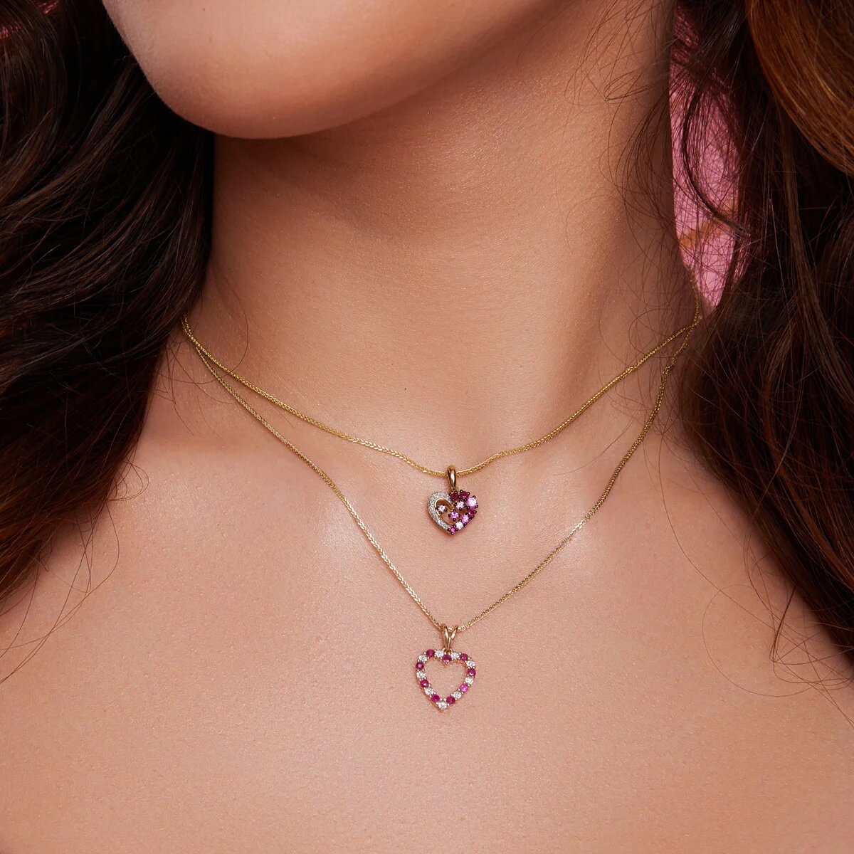 Kuldne ripats süda teemantite ja rubiinidega 333