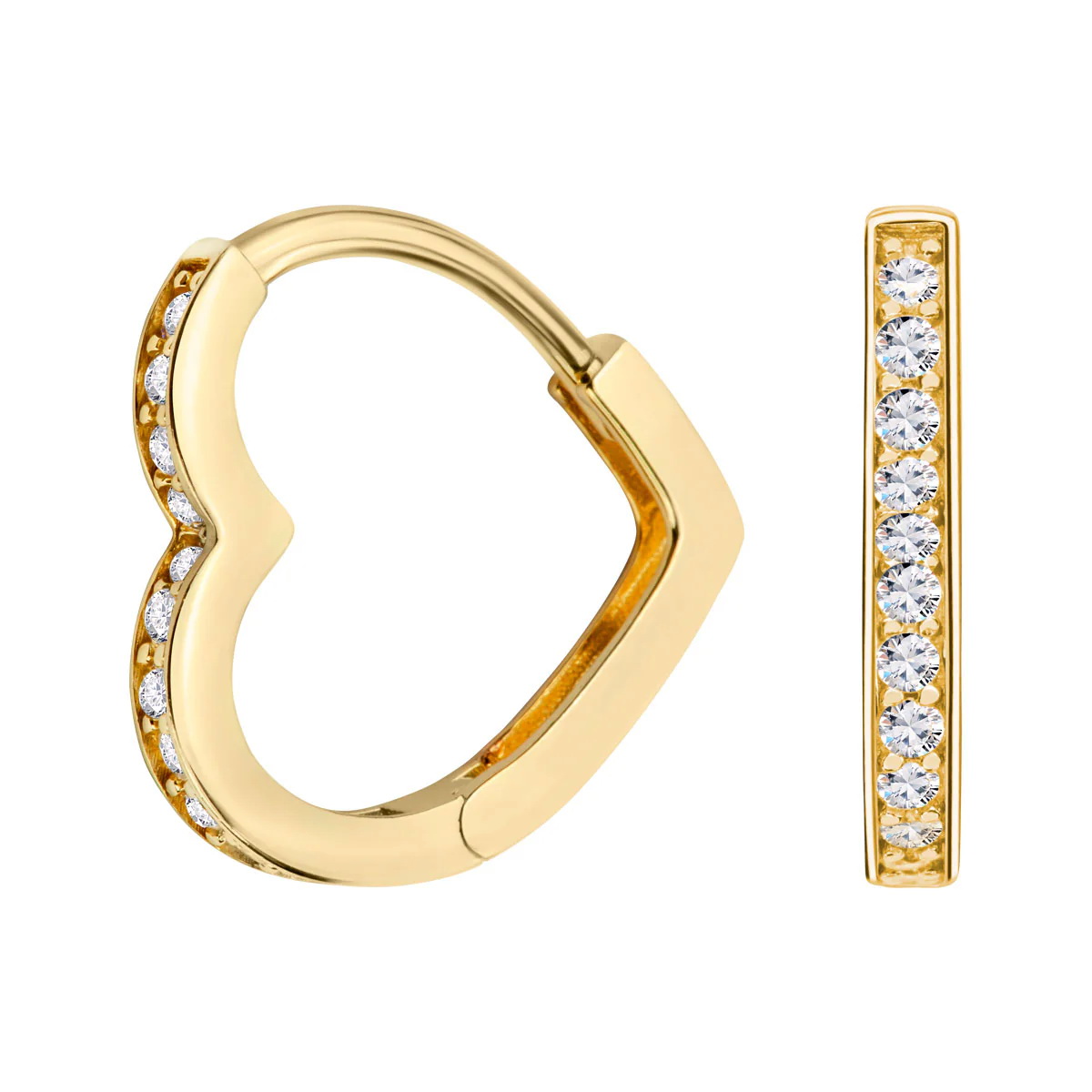 Kuldne südametega kõrvarõngad tsirkoonidega tüdrukule või naisele – 333