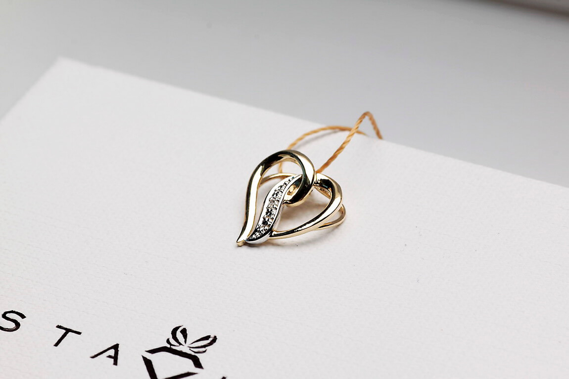 Kuldne südamikujuline ripats 1 teemandiga 585