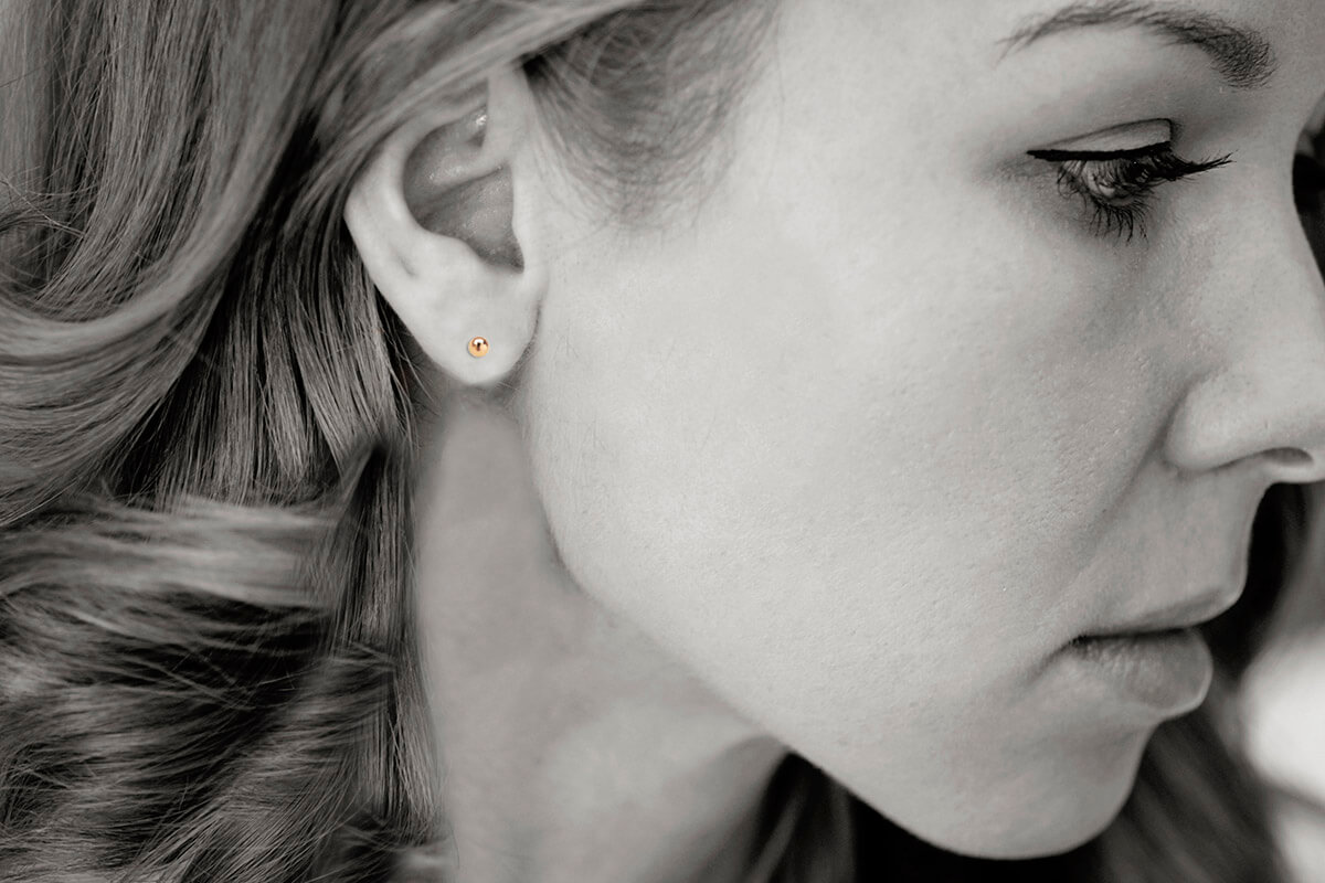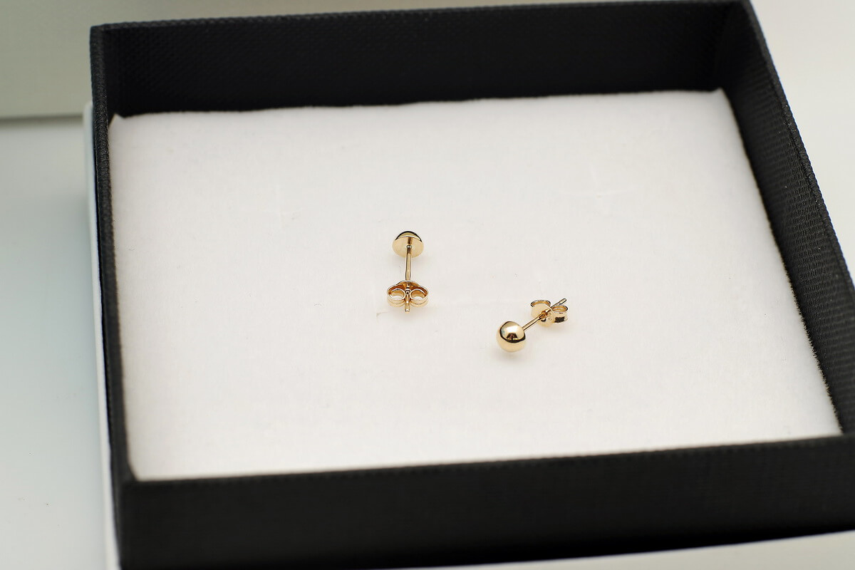 Pikad, läbi kõrva käivad kuldkõrvarõngad, sileda kuulikesega