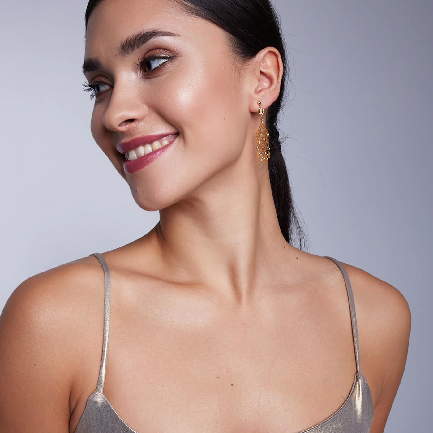 BOHO stiilis kõrvarõngad, valmistatud prooviga 0,925 hõbedast, kullatud.