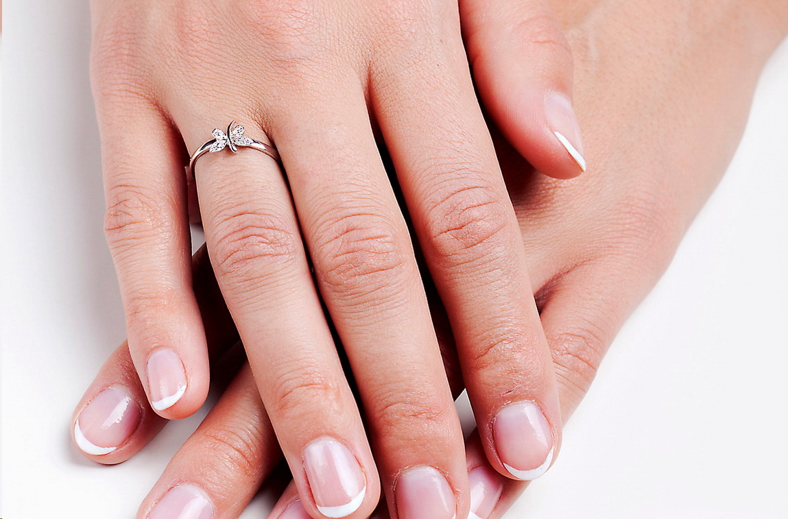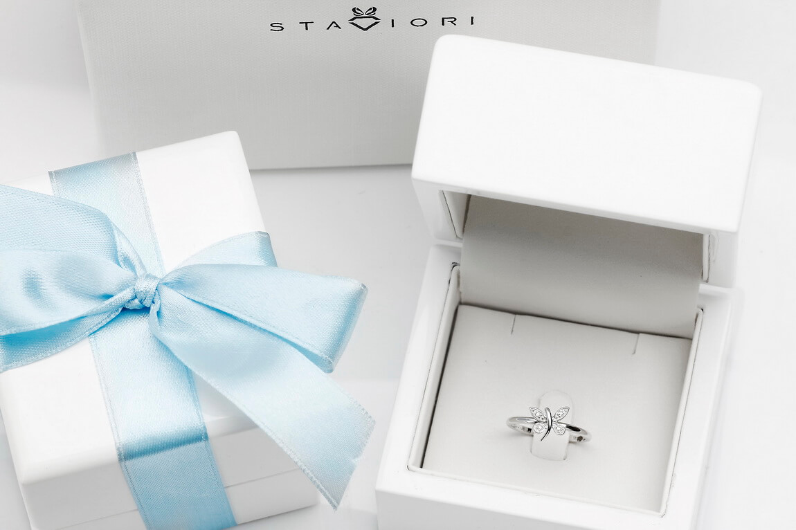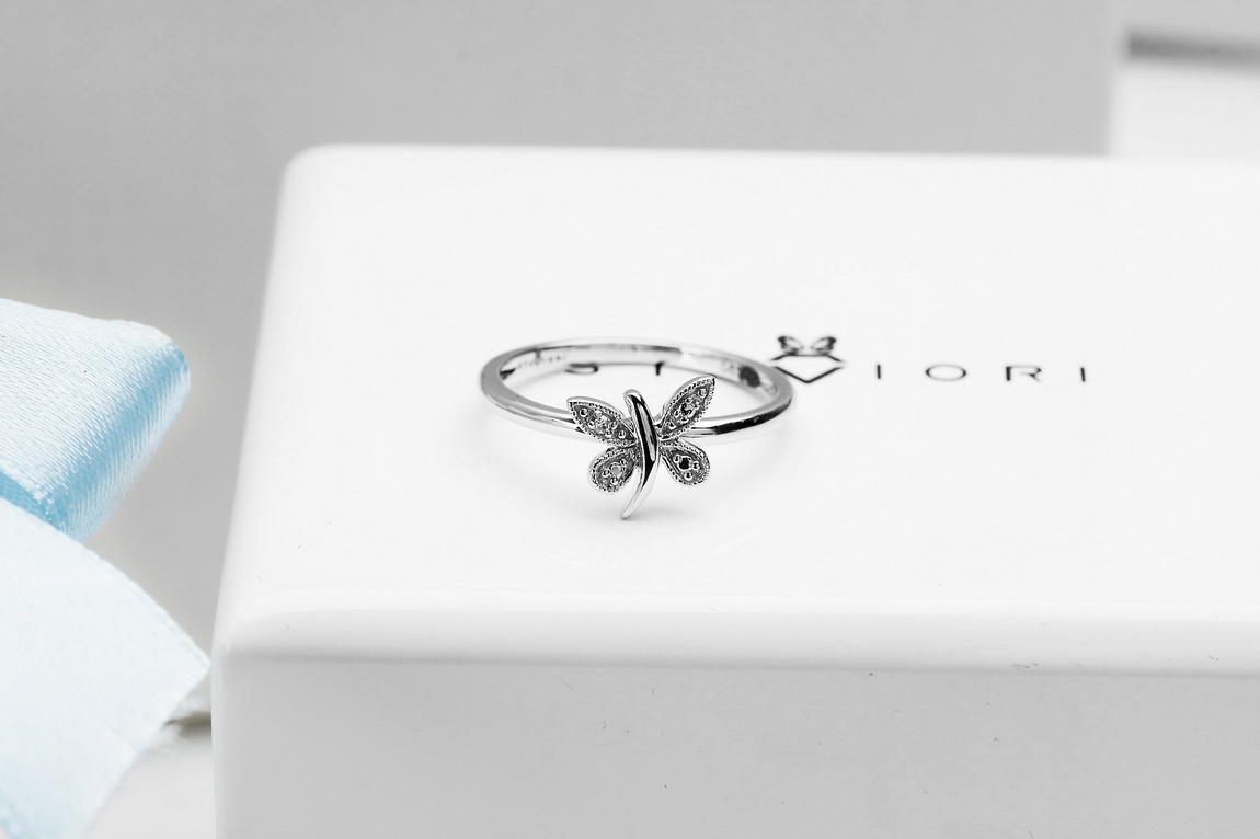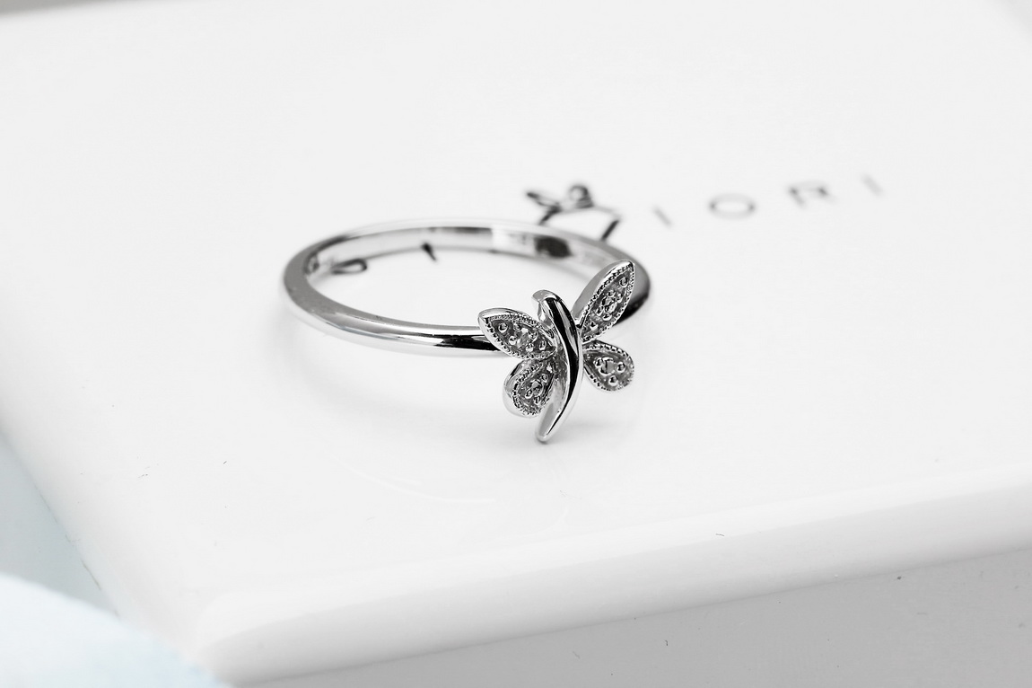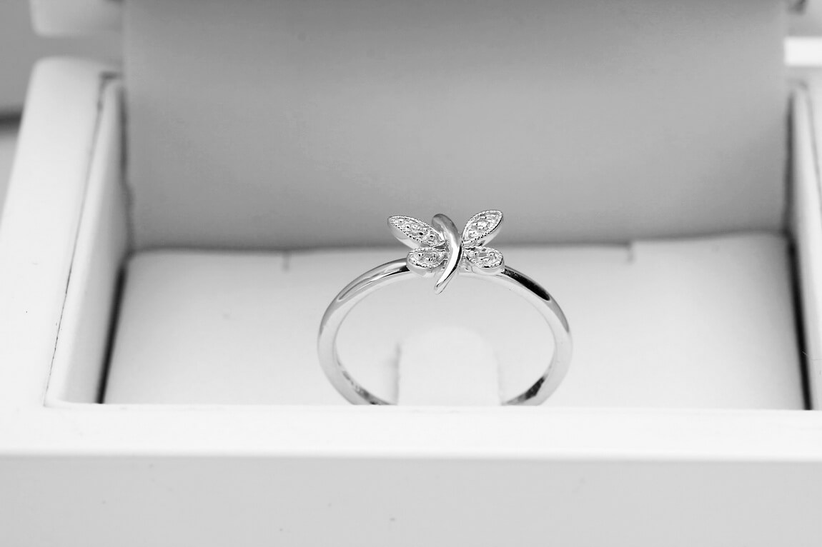 Liblikaga sõrmus valgest kullast teemandiga