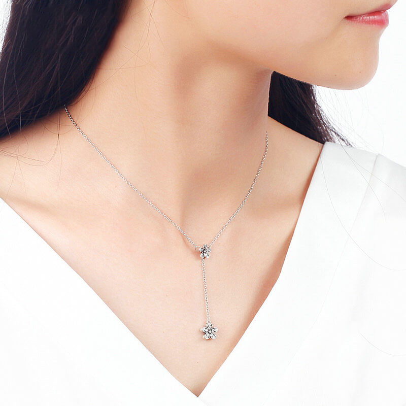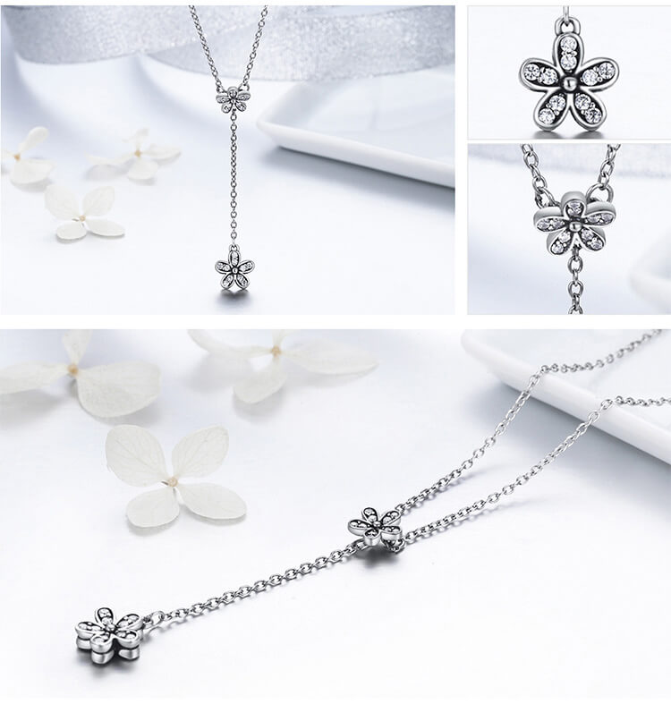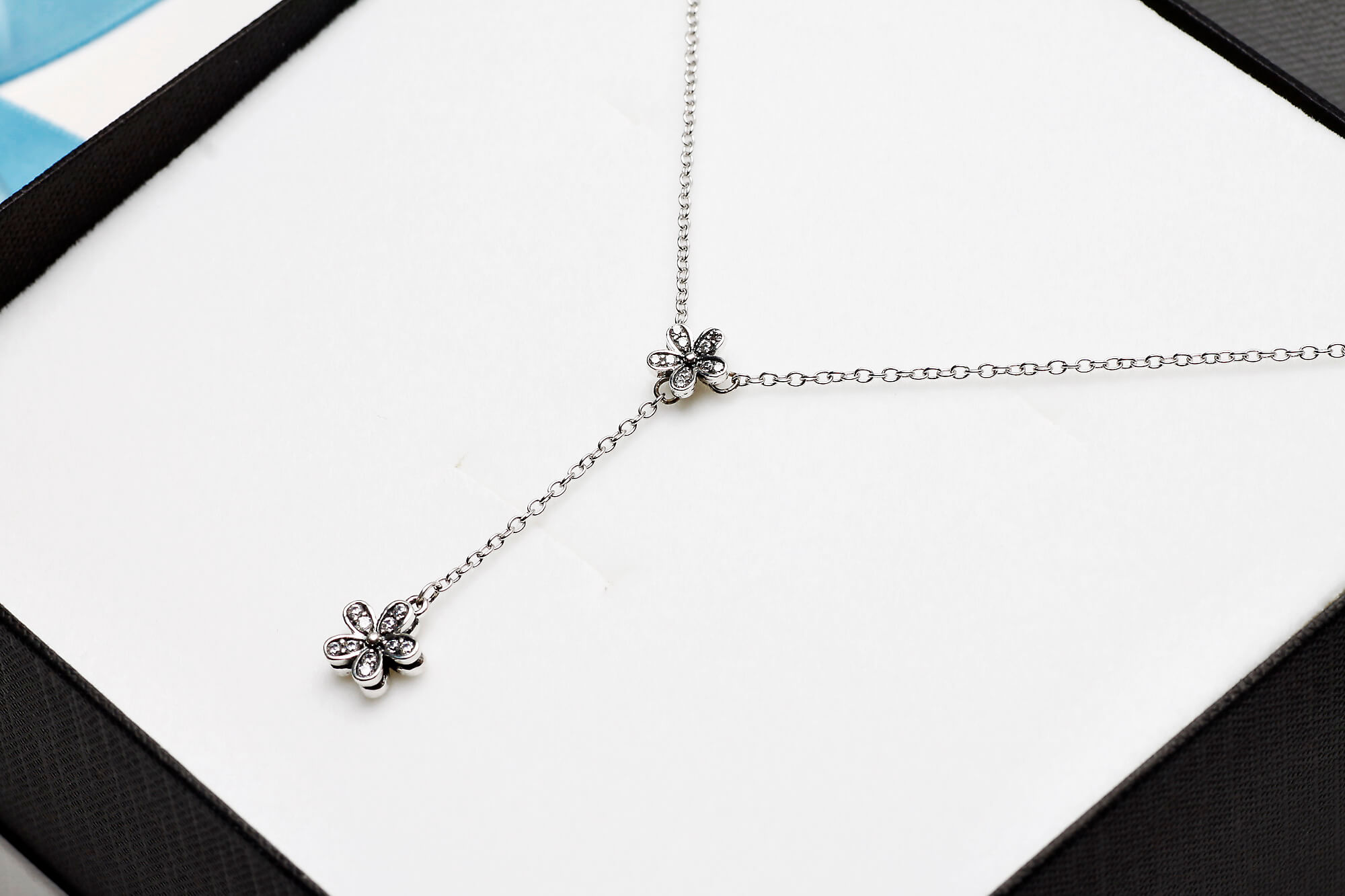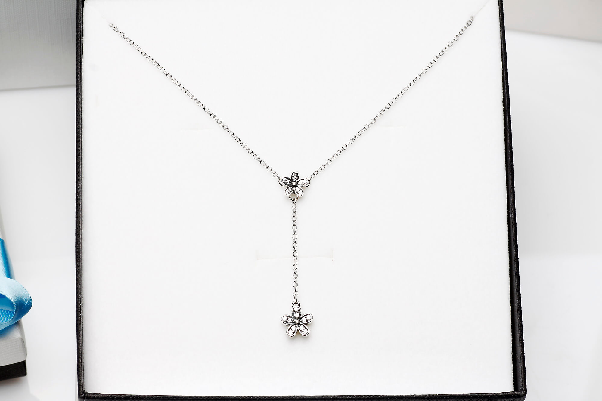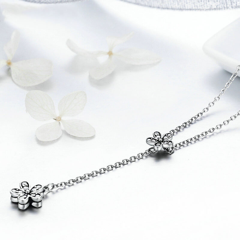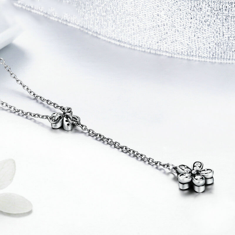 Oksüdeeritud hõbedast kaelakee lillekesega