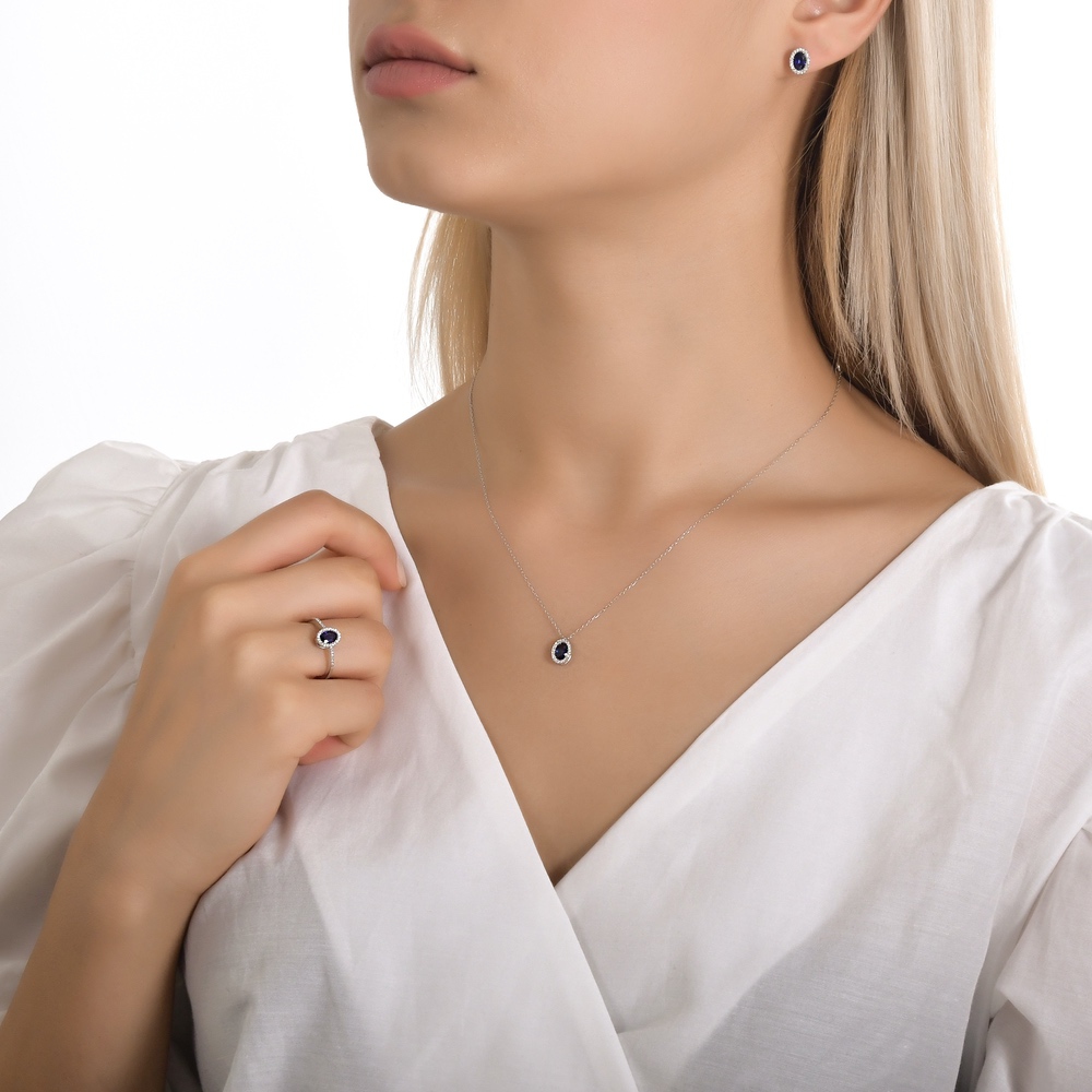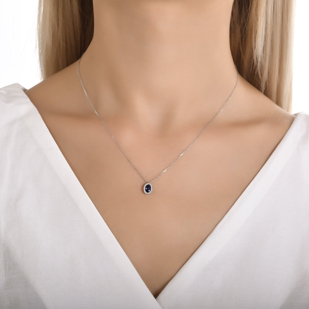 Ovaalne kaelakee safiiri ja briljantidega