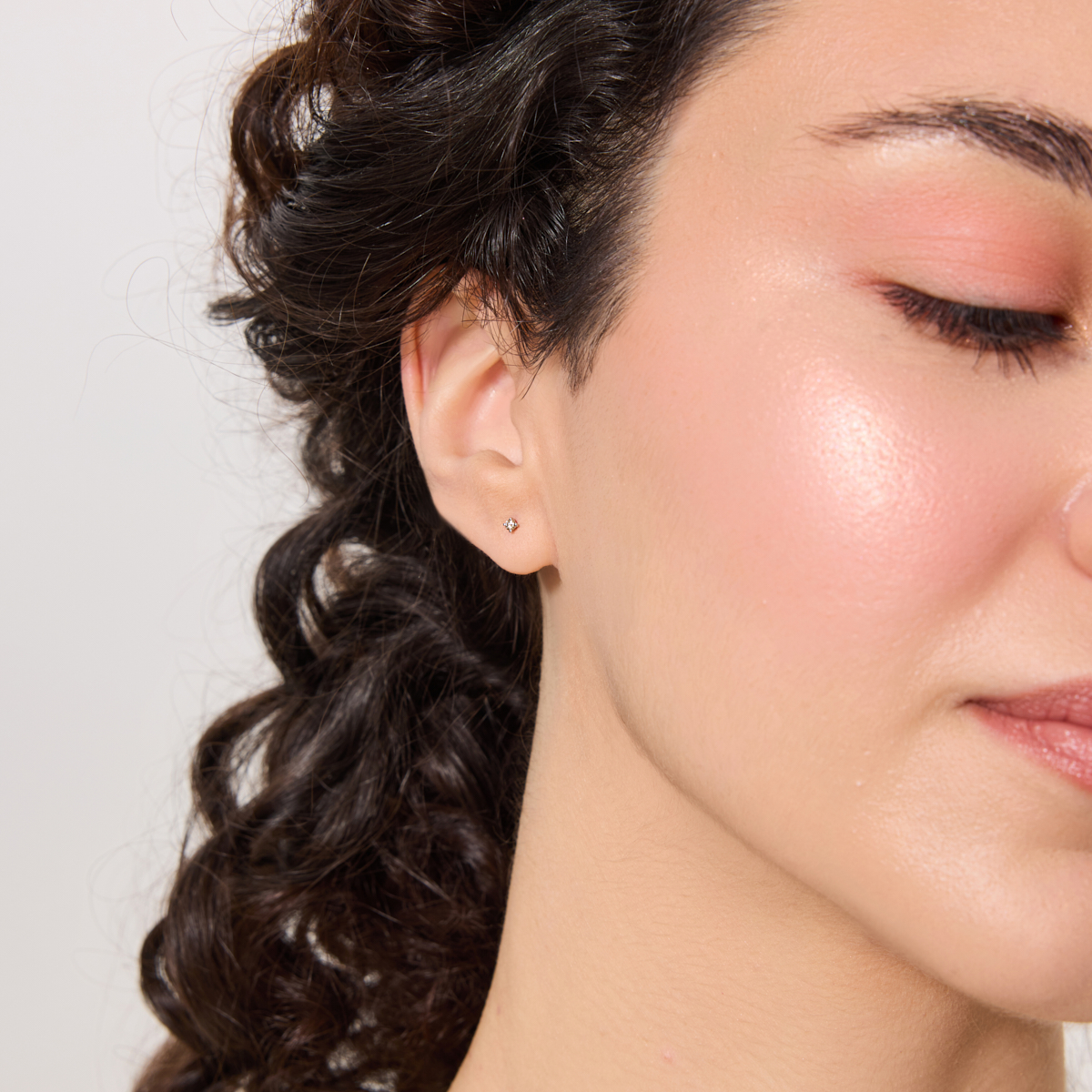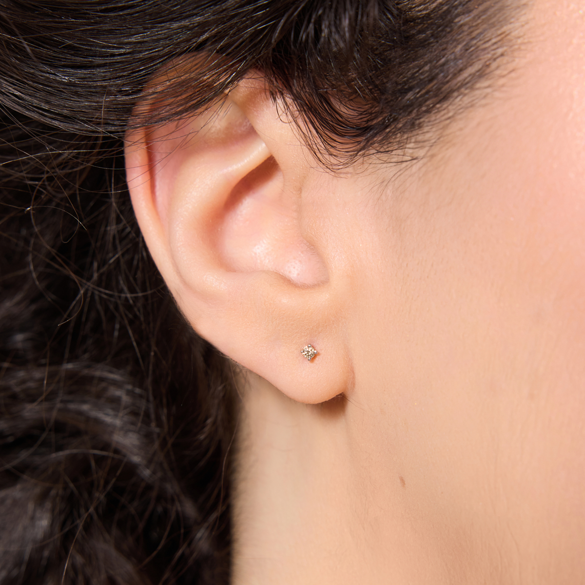 Peenikesed, väikesed teemantitega kõrvarõngad, mis kaugelt kuma kõrvast.