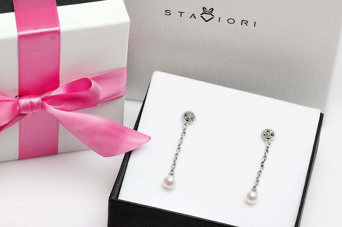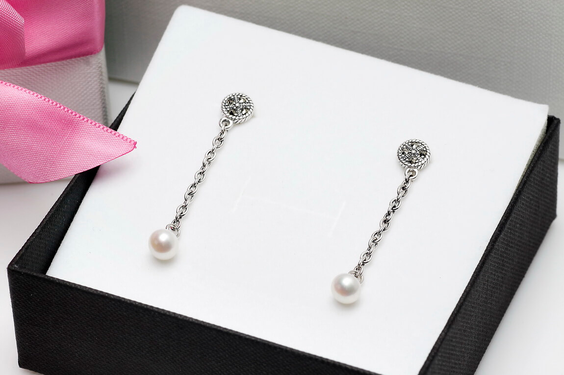 Pikad hõbedased kõrvarõngad naturaalsete pärlitega – KDM5180